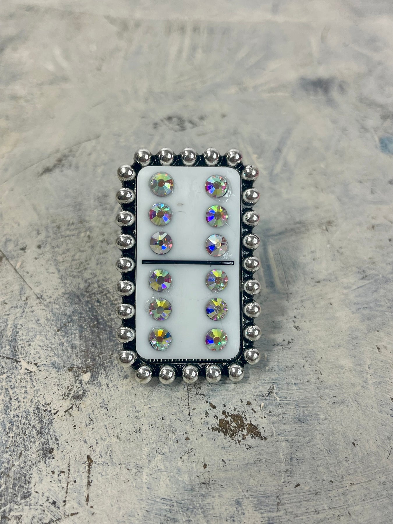 [{"id":47477023834368,"title":"Default Title","option1":"Default Title","option2":null,"option3":null,"sku":null,"requires_shipping":true,"taxable":true,"featured_image":null,"available":false,"name":"White Domino Ab Crystal adjustable Ring","public_title":null,"options":["Default Title"],"price":3500,"weight":0,"compare_at_price":null,"inventory_quantity":0,"inventory_management":"shopify","inventory_policy":"deny","barcode":null,"requires_selling_plan":false,"selling_plan_allocations":[]}]