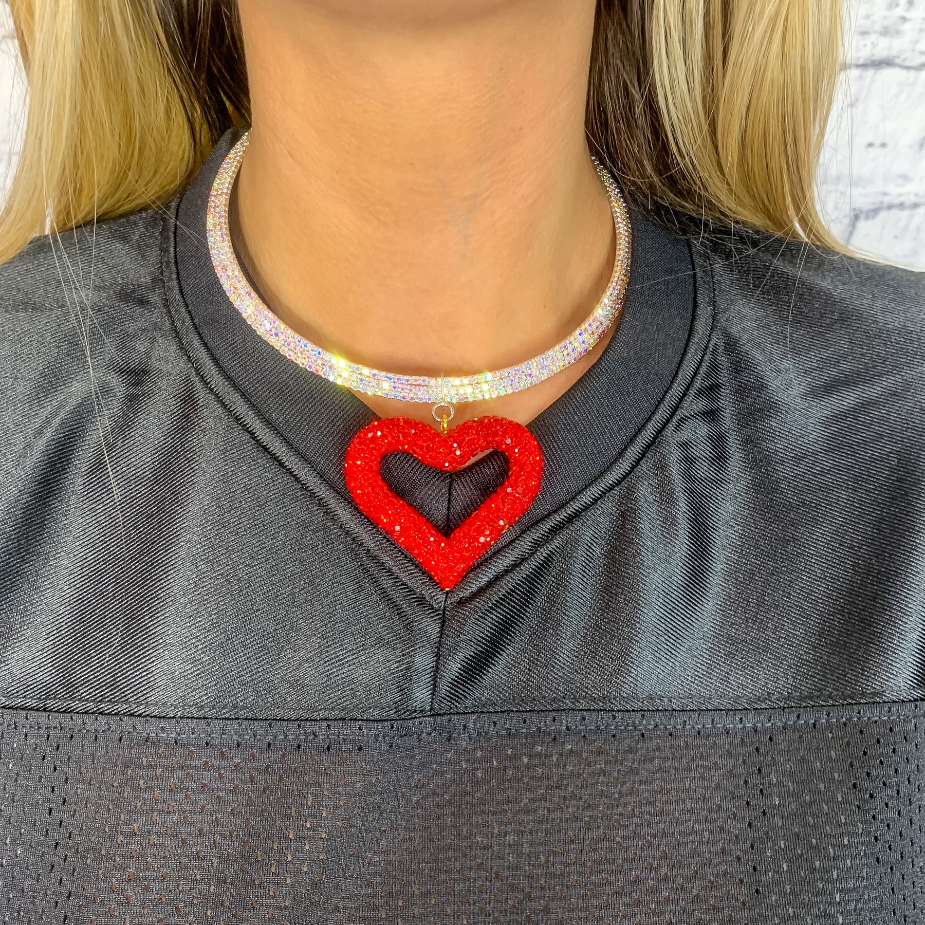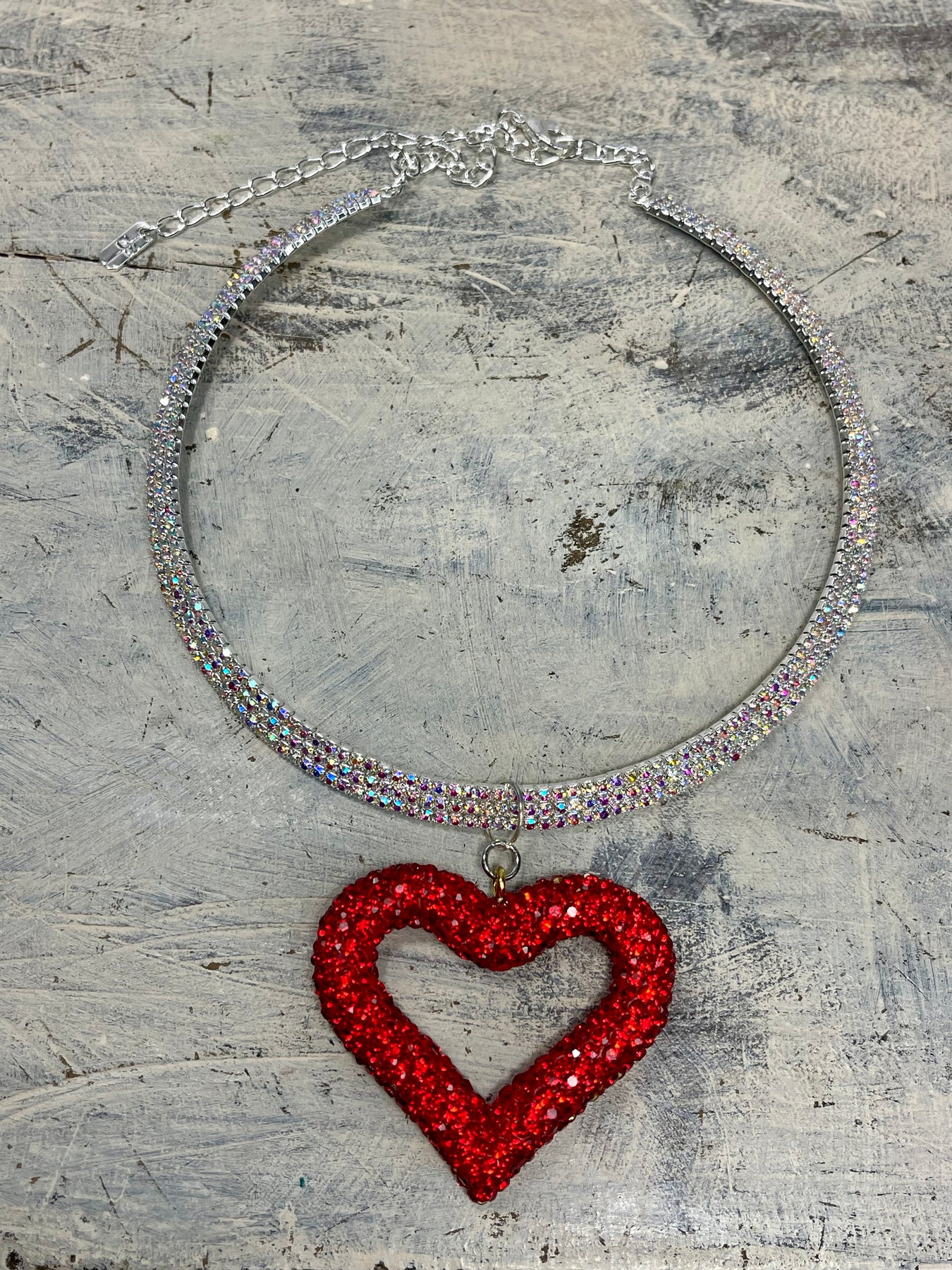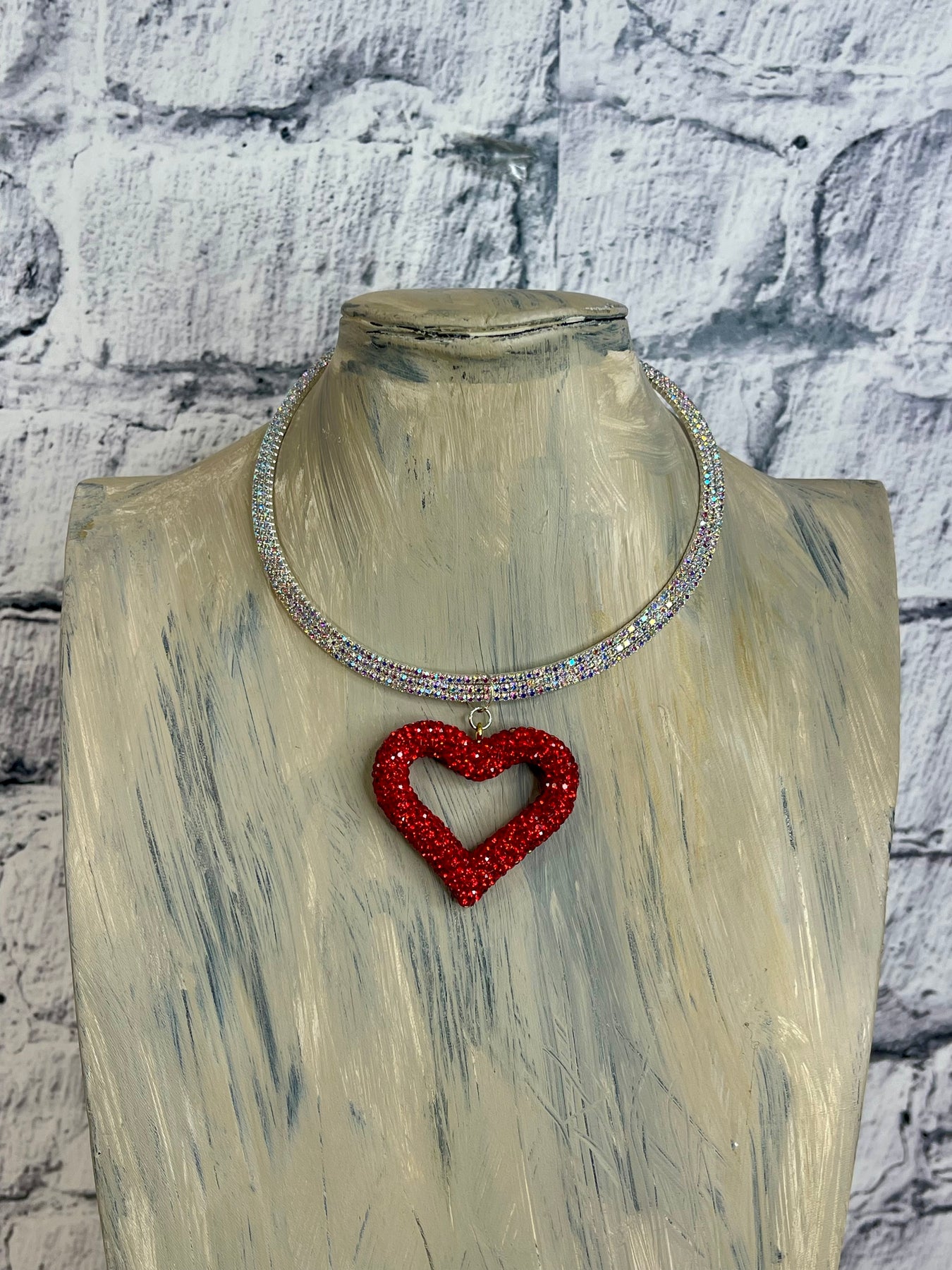 Lovers Lane Red Heart Crystal Collar necklace- Ab Crystal/Red