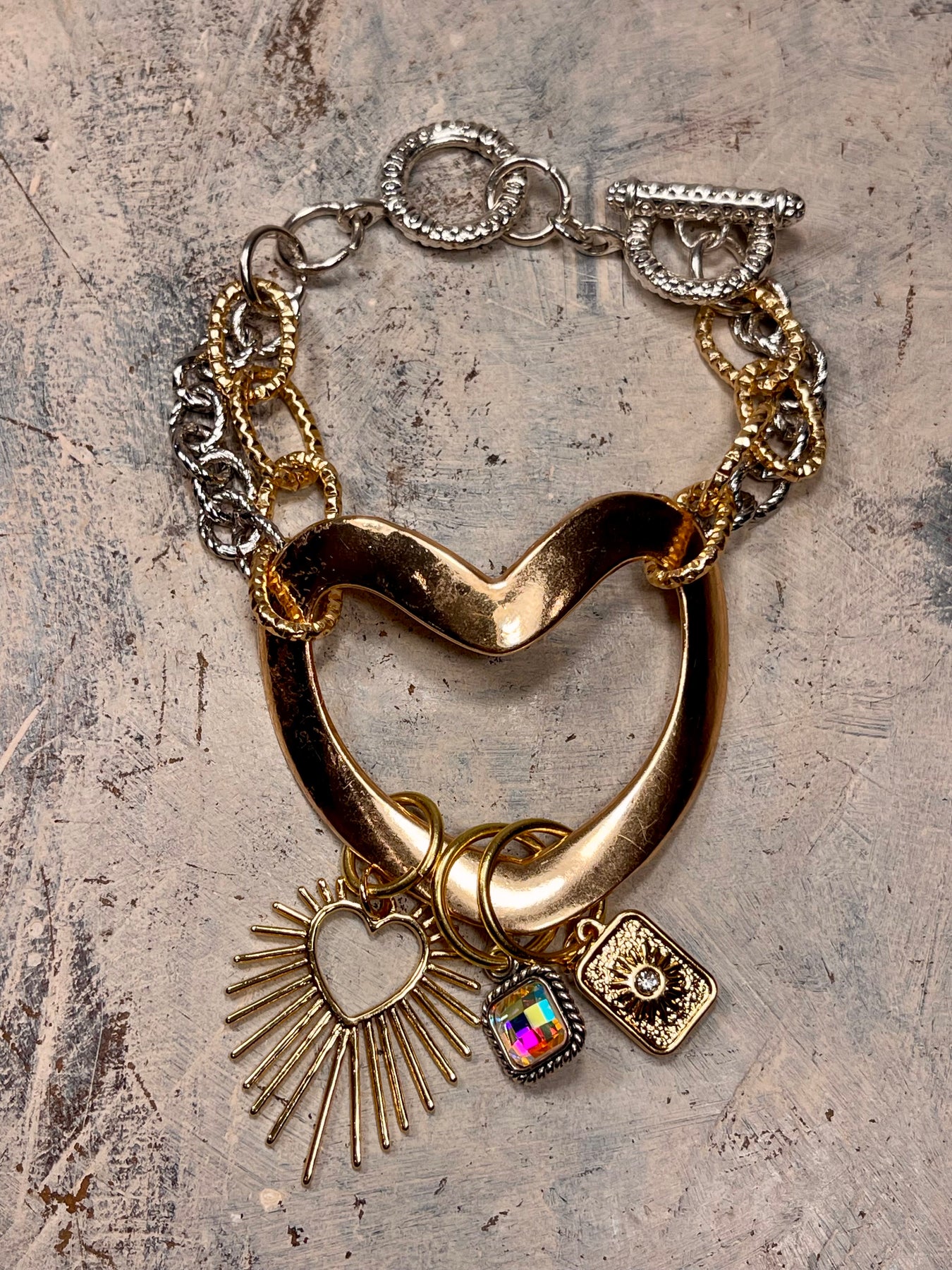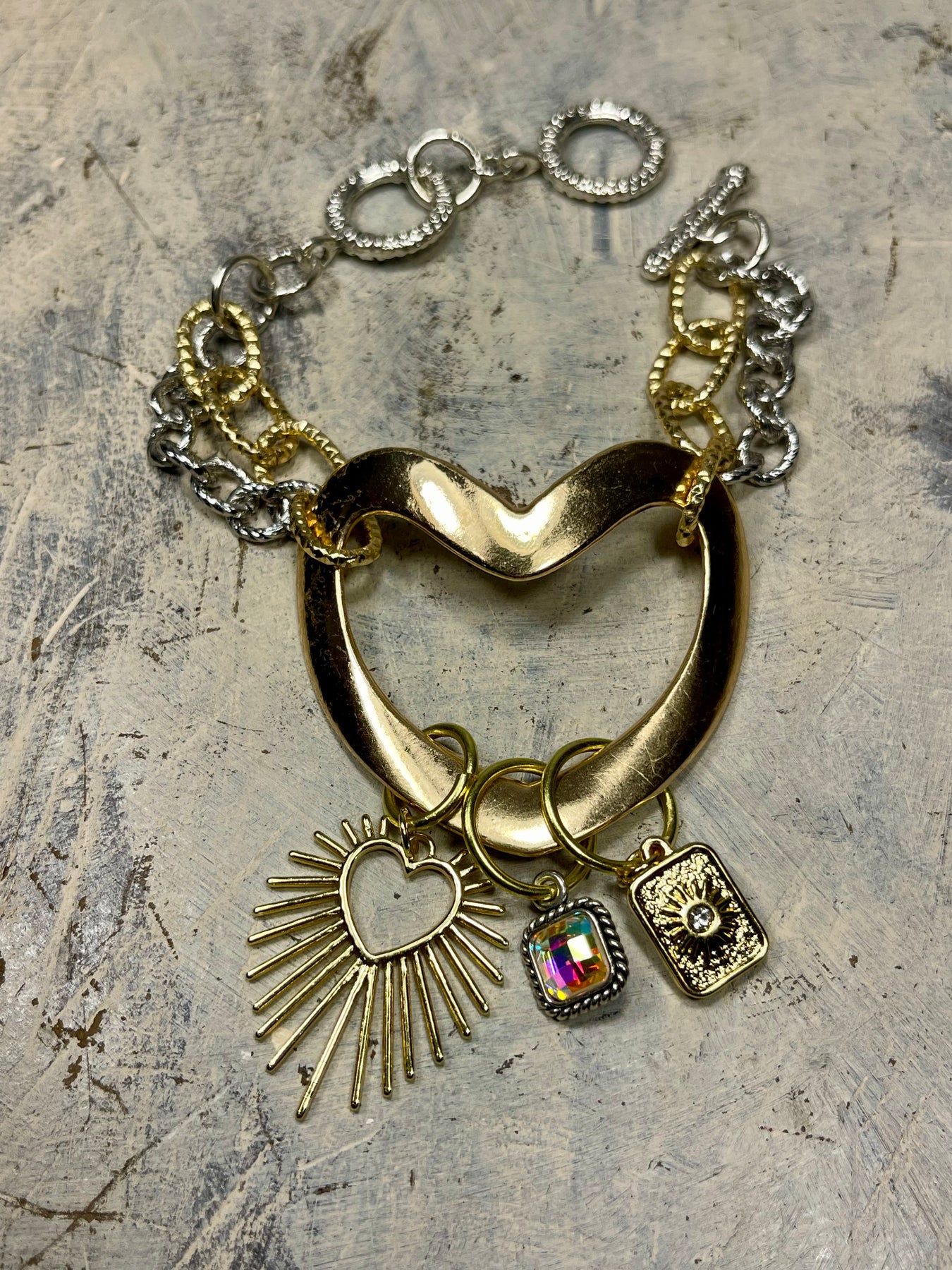 Still Dreaming Open Heart Charm Bracelet - Mixed Metal