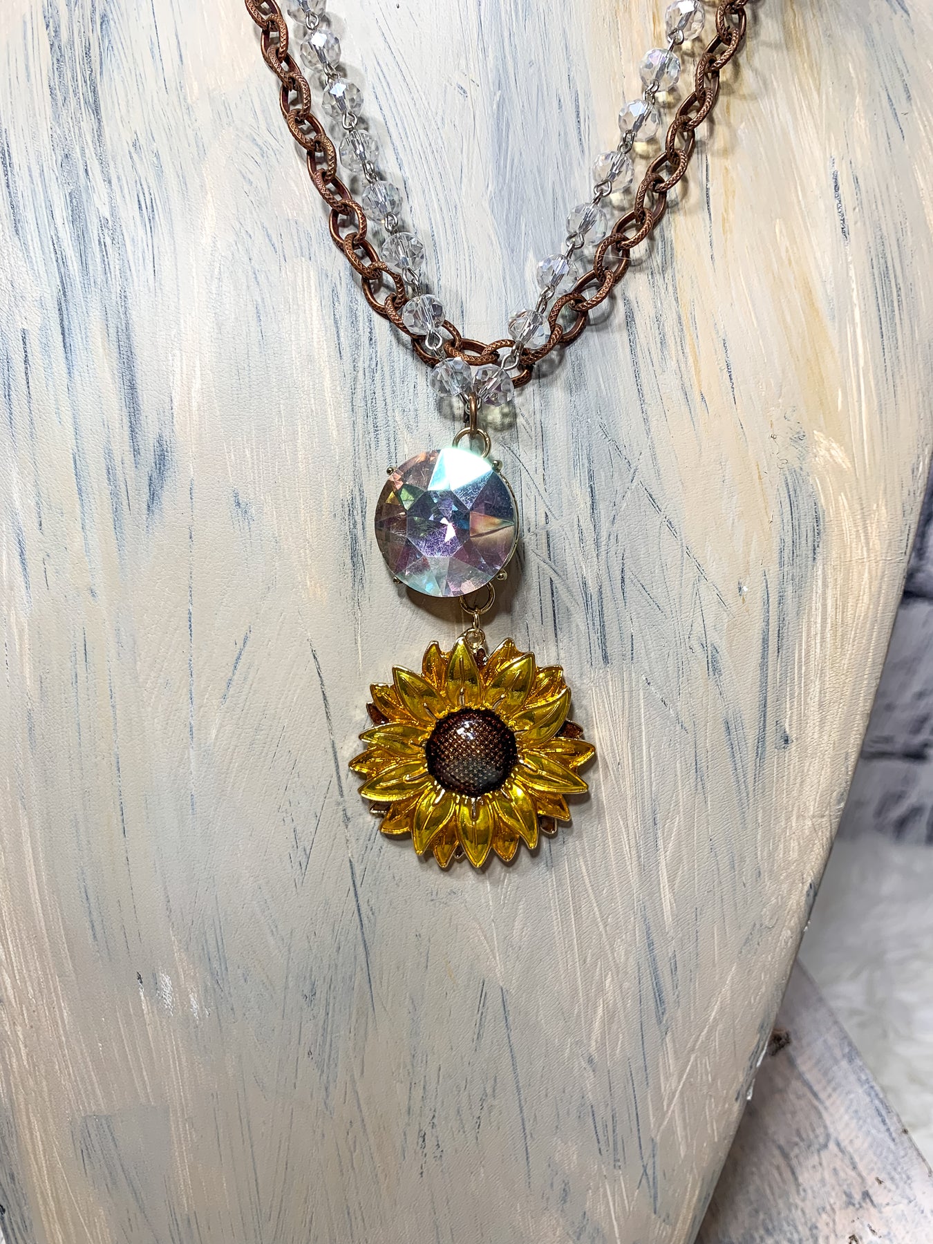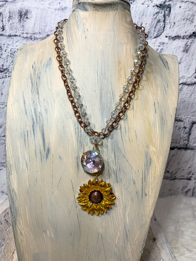 Sunflower AB and Clear Crystal Chain Necklace - Gold