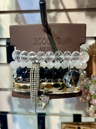 Clear crystal rope metal stretch bangle bracelet -Silver