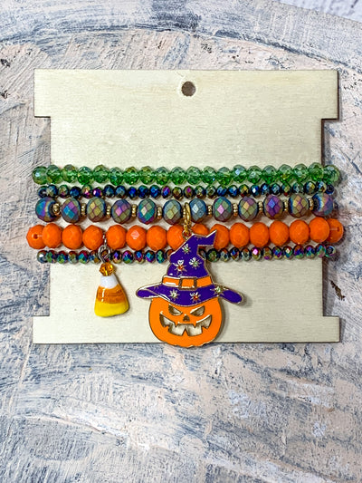 Ghoul's Night Jack O Lantern Mini Bracelet Set - Orange Mix