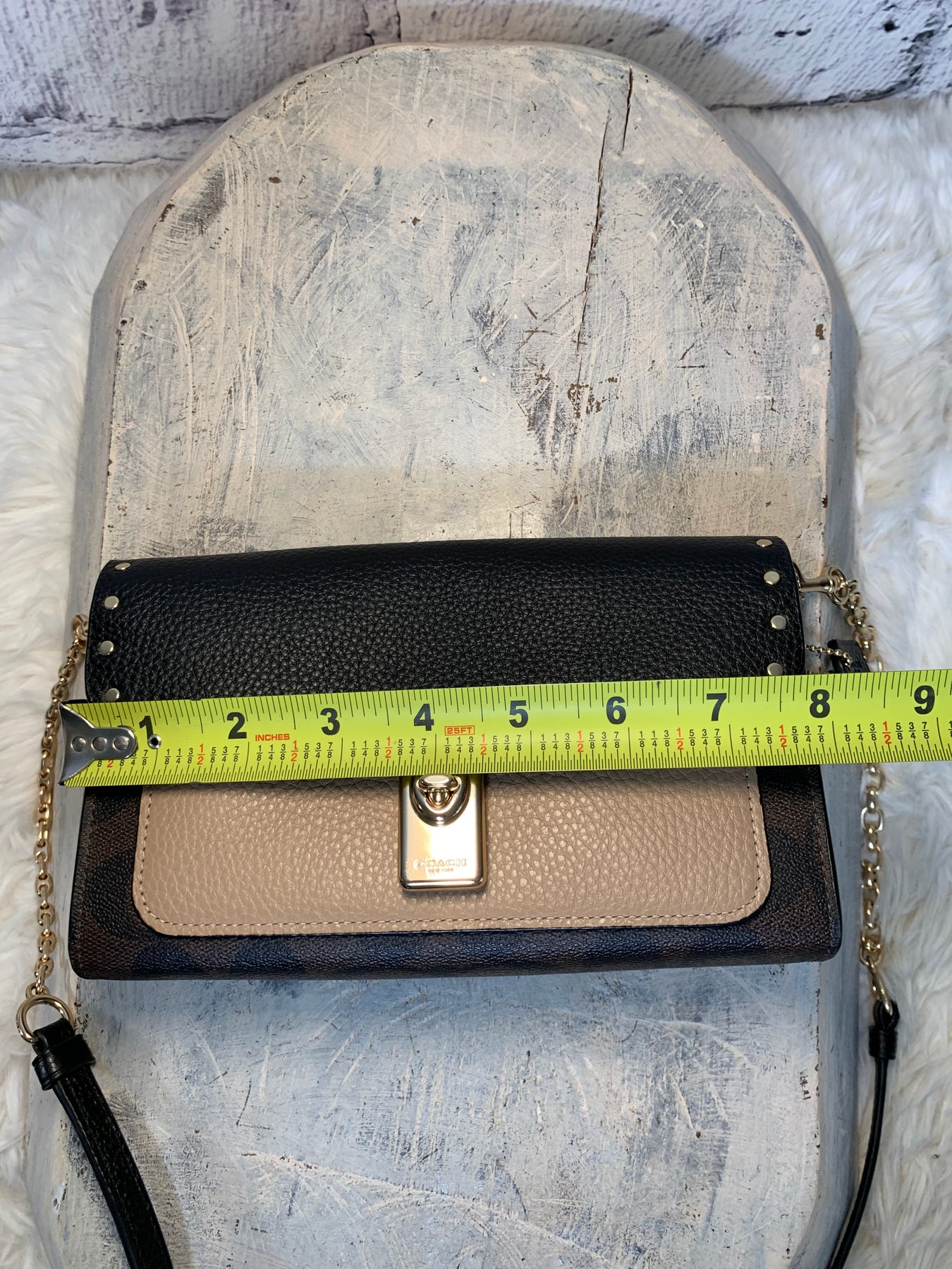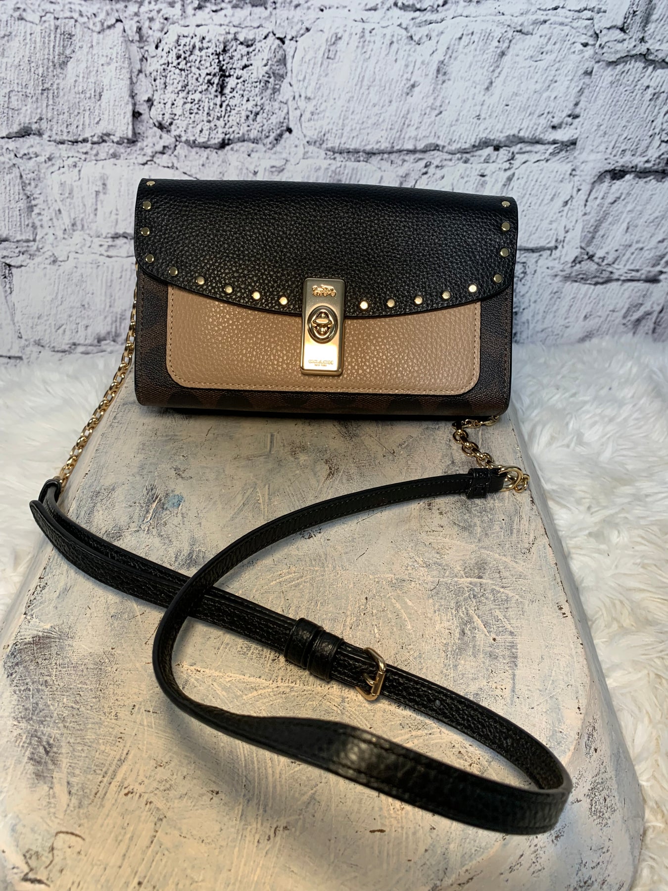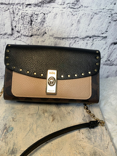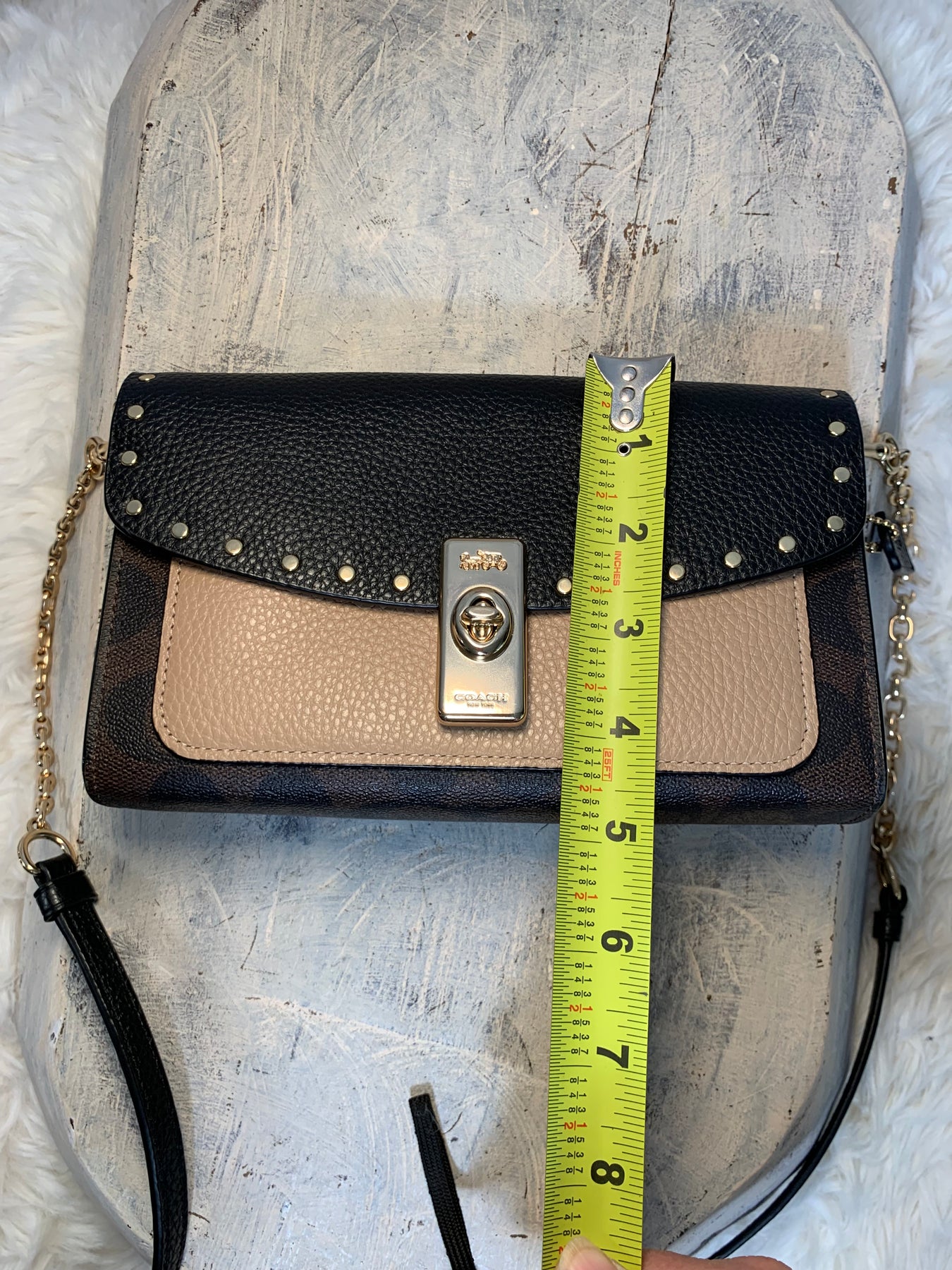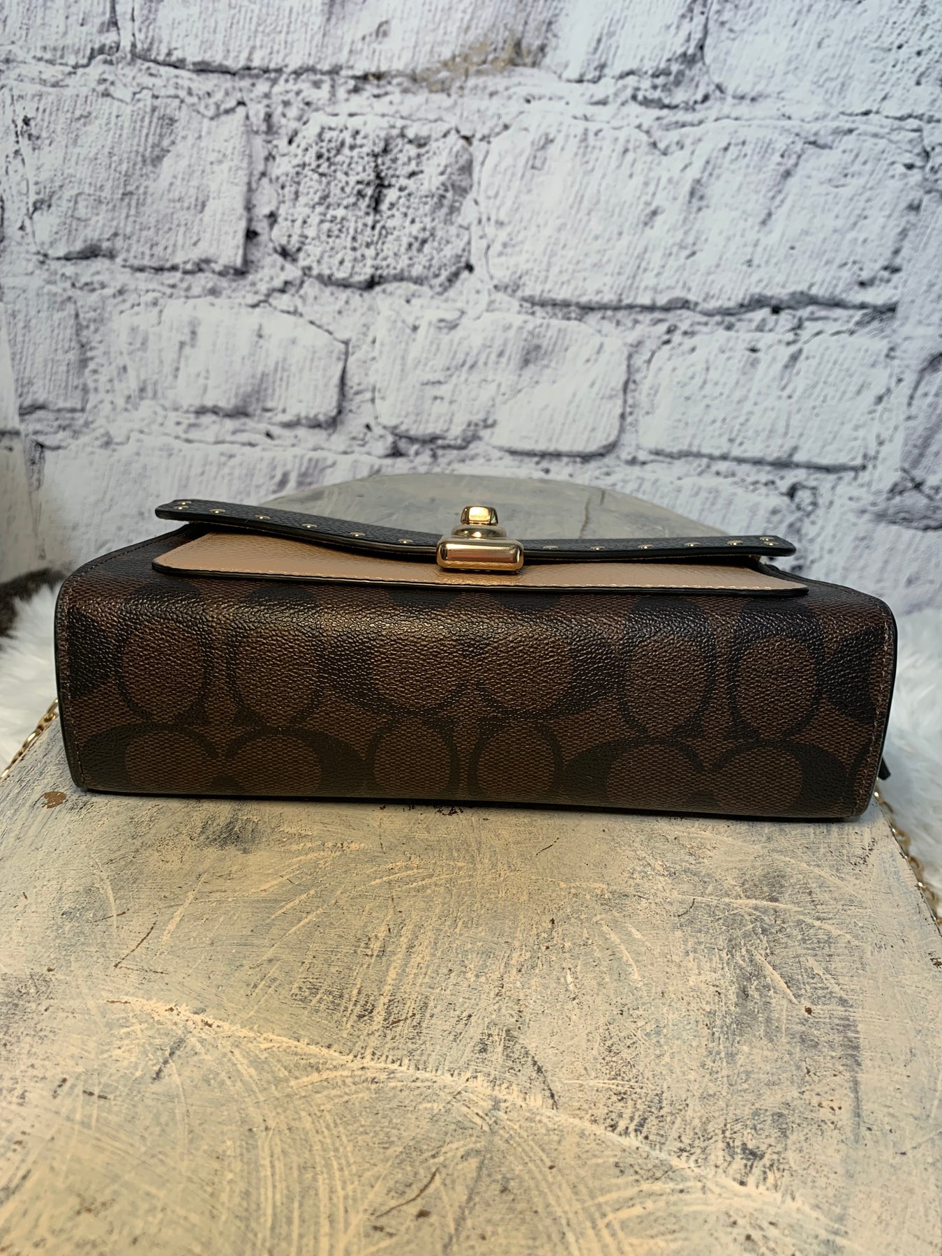 Pre Owned Coach Lane Crossbody Signature Brown Canvas With Rivets Gold Chain Shoulder Bag