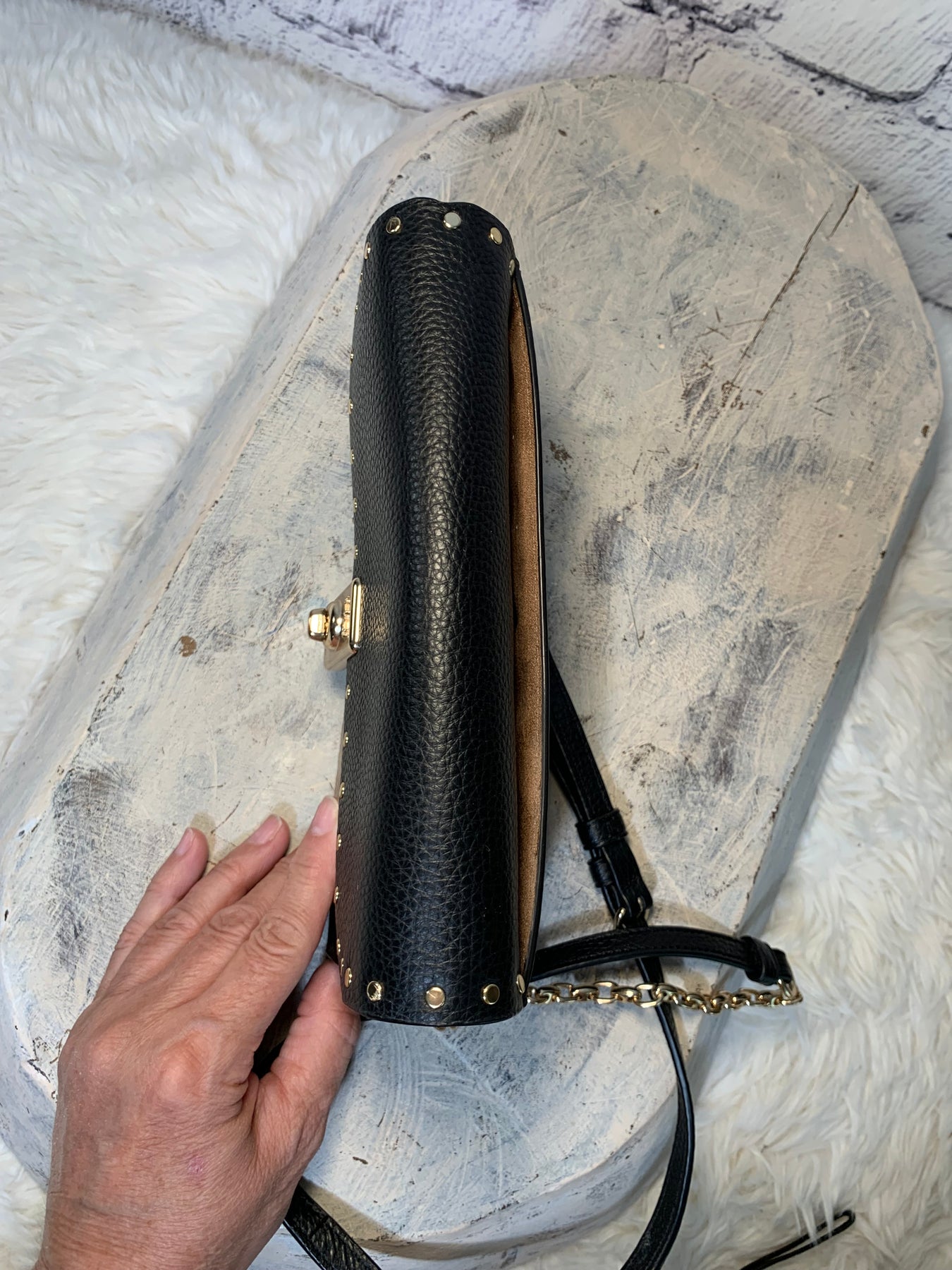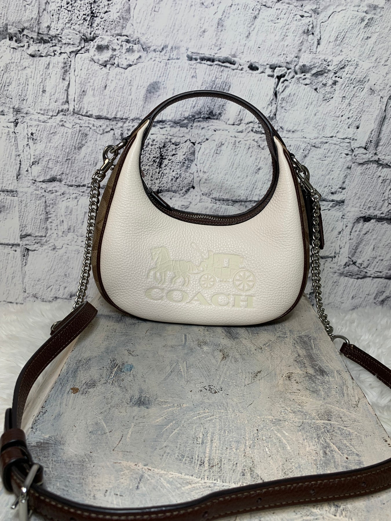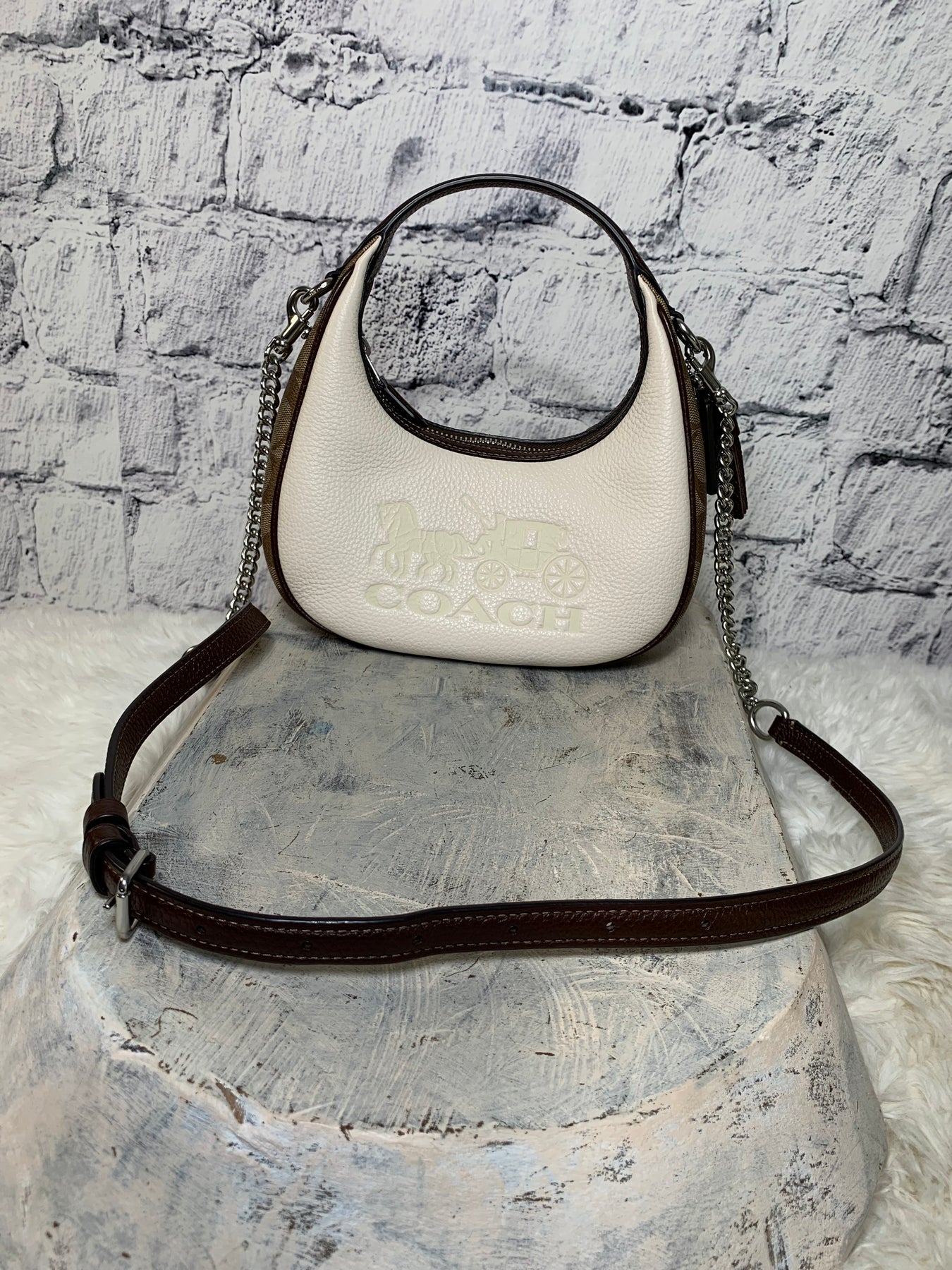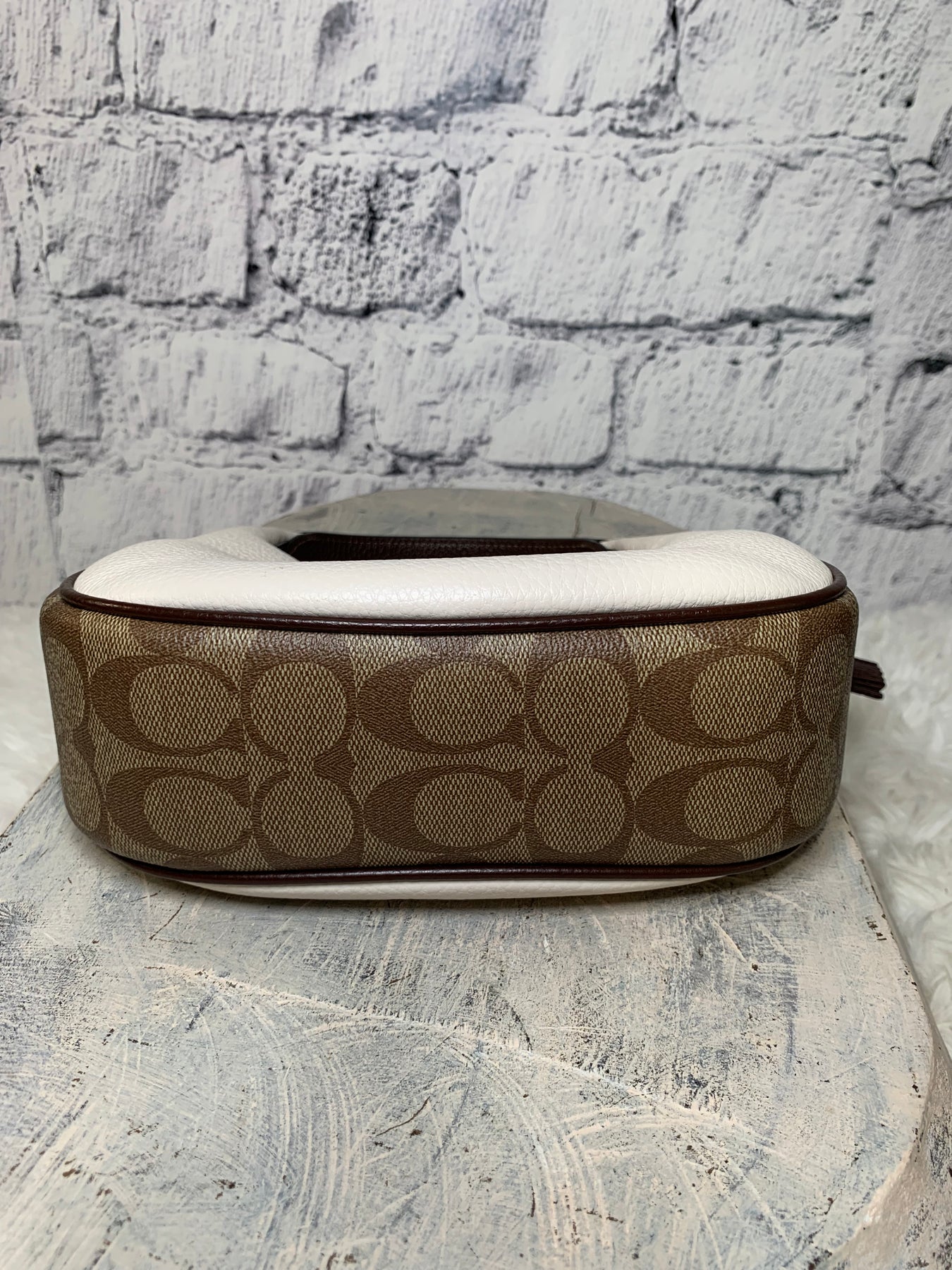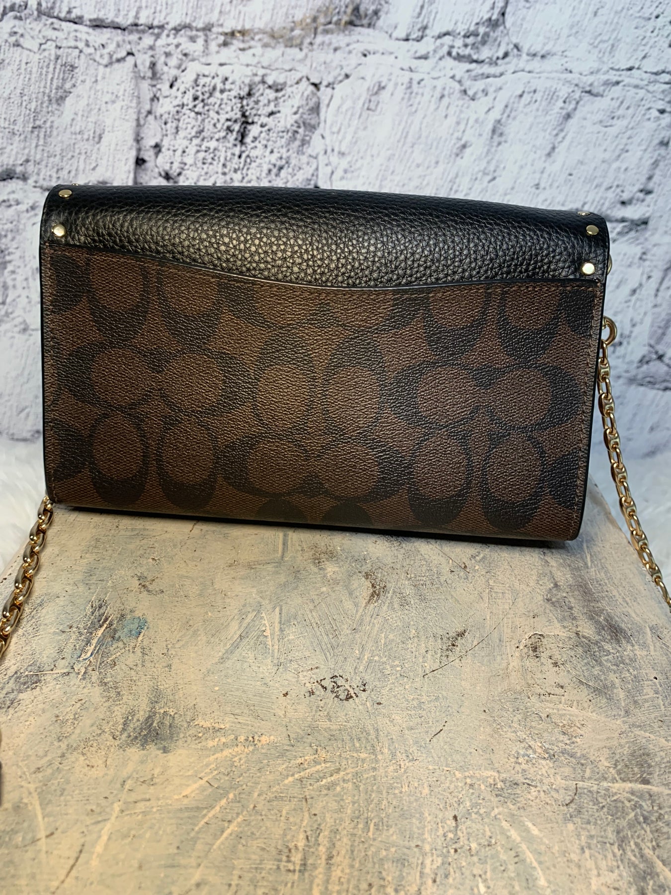 Pre Owned Coach Lane Crossbody Signature Brown Canvas With Rivets Gold Chain Shoulder Bag