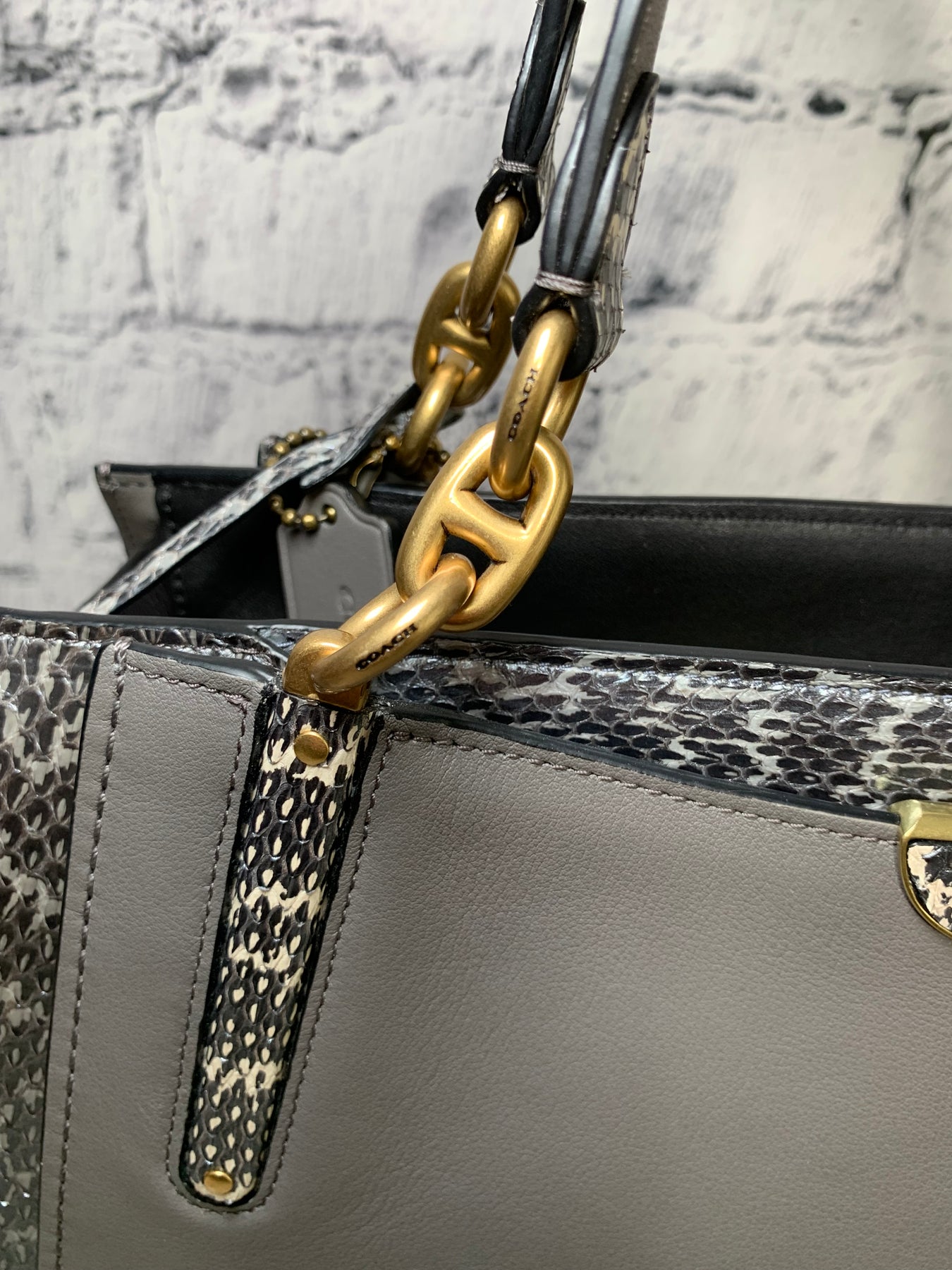 Pre Owned Coach Dreamer 36 Satchel Bag In Colorblock With Snakeskin Detail 76459 RARE