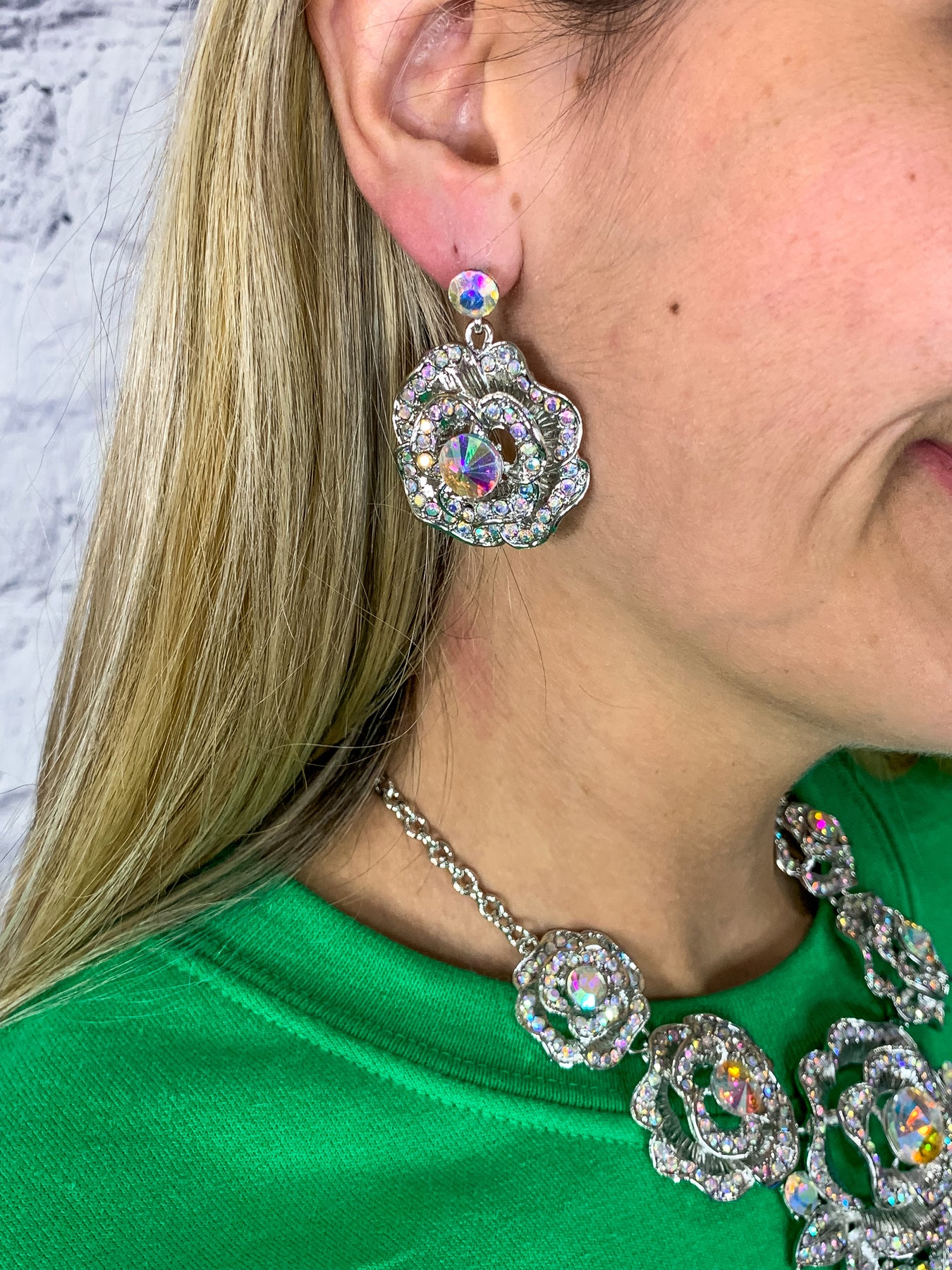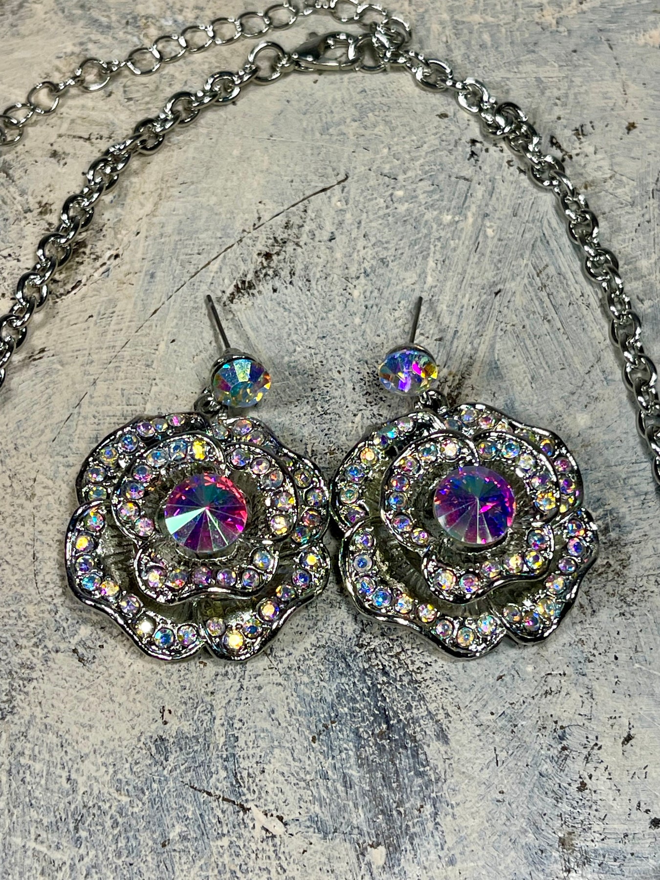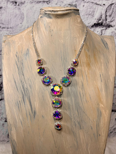 CZ Teardrop Cross Crystal Charm necklace -gold/multi