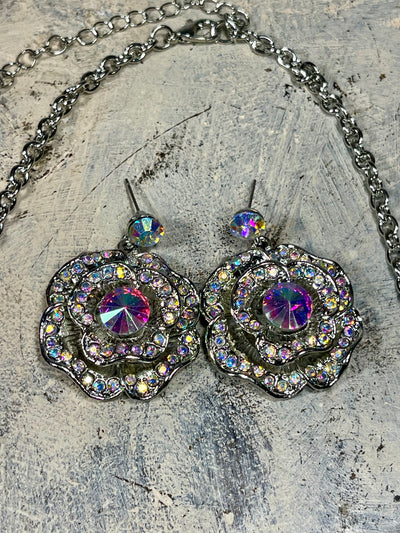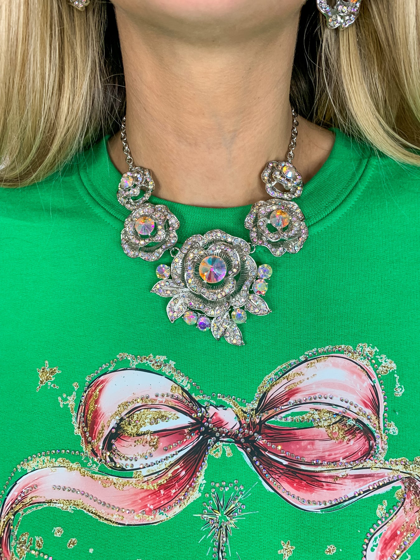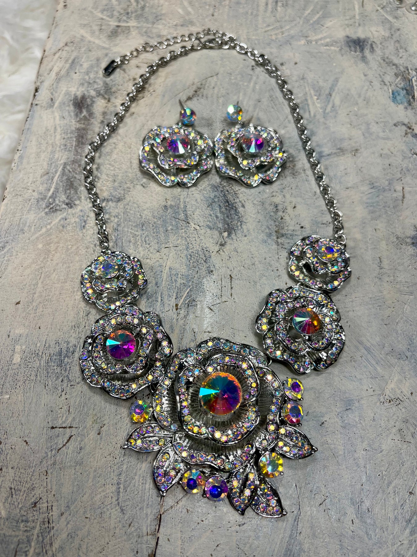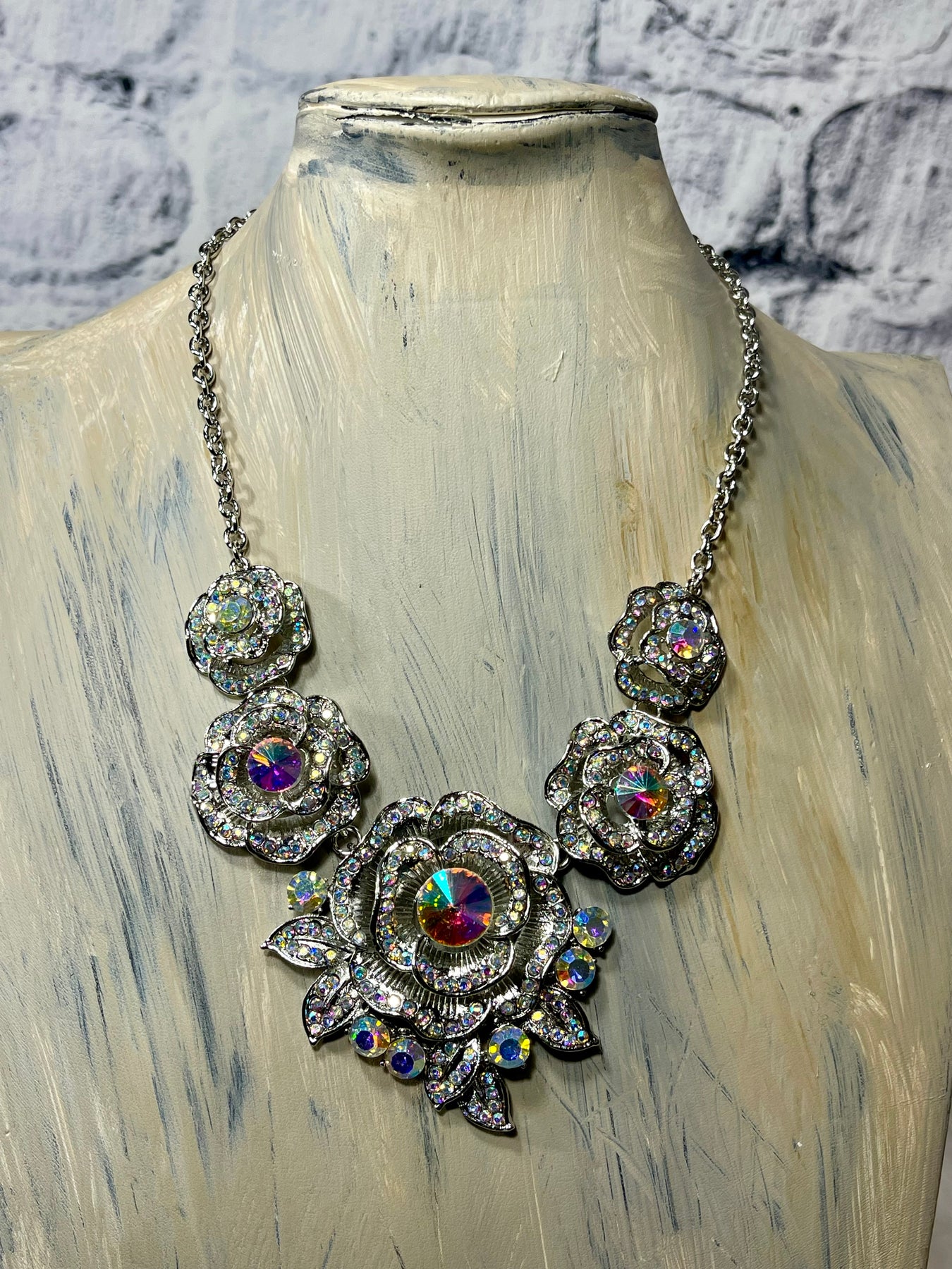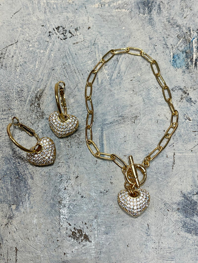 CZ Heart Cross Crystal Charm necklace -gold/multi