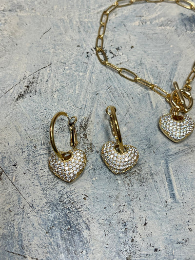 CZ Heart Cross Crystal Charm bracelet -gold/multi