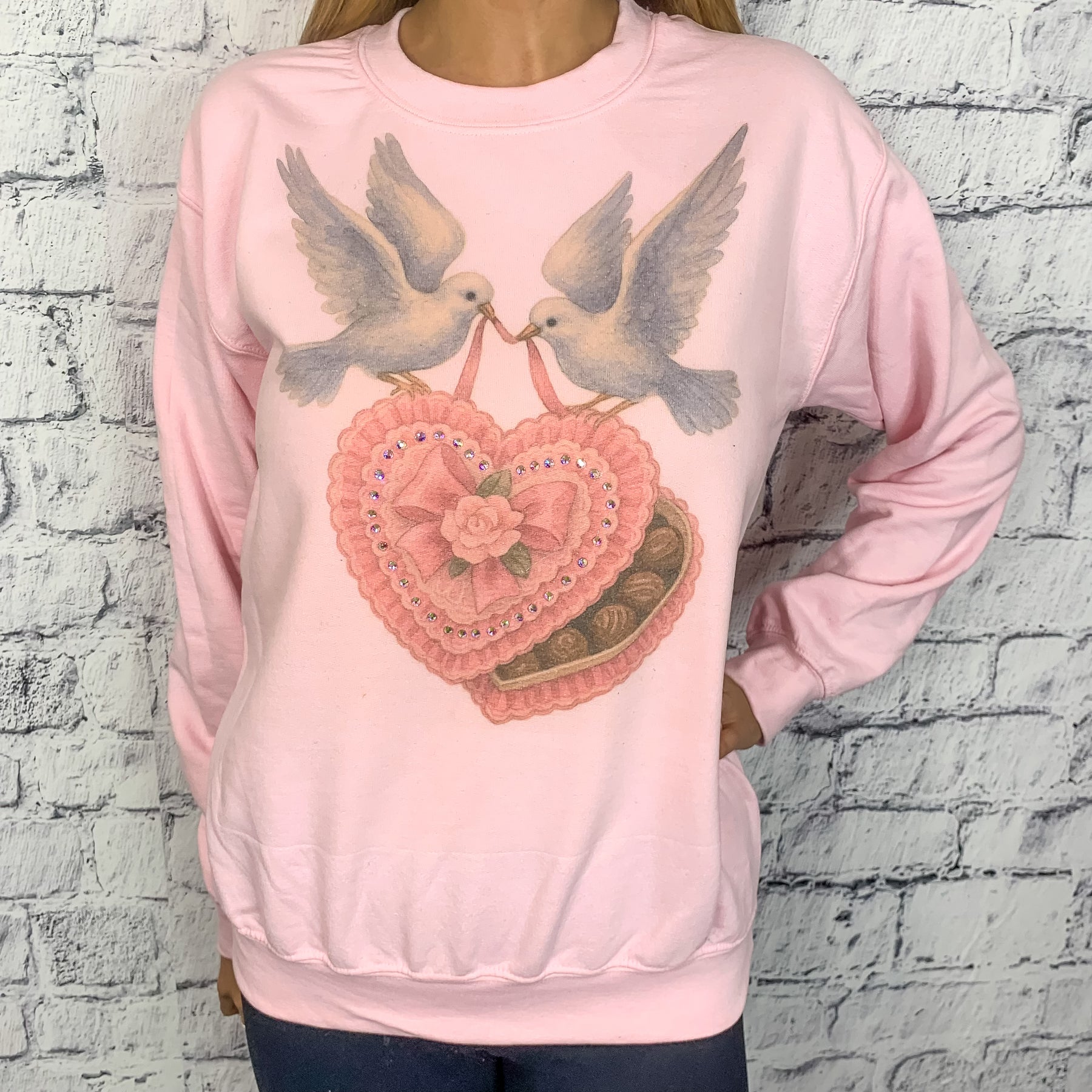 Love Doves AB Embellished Graphic Pullover - Pink