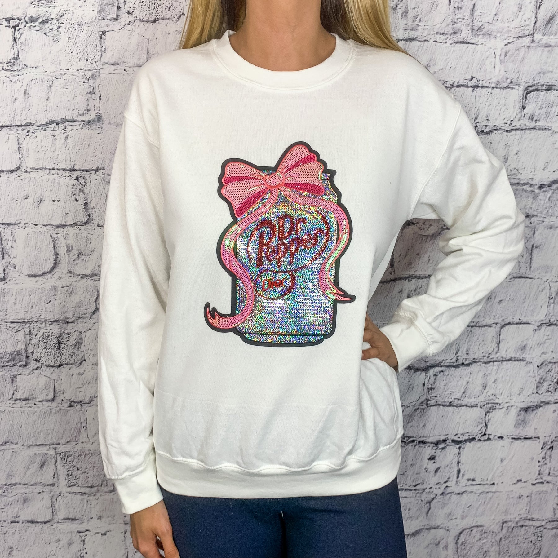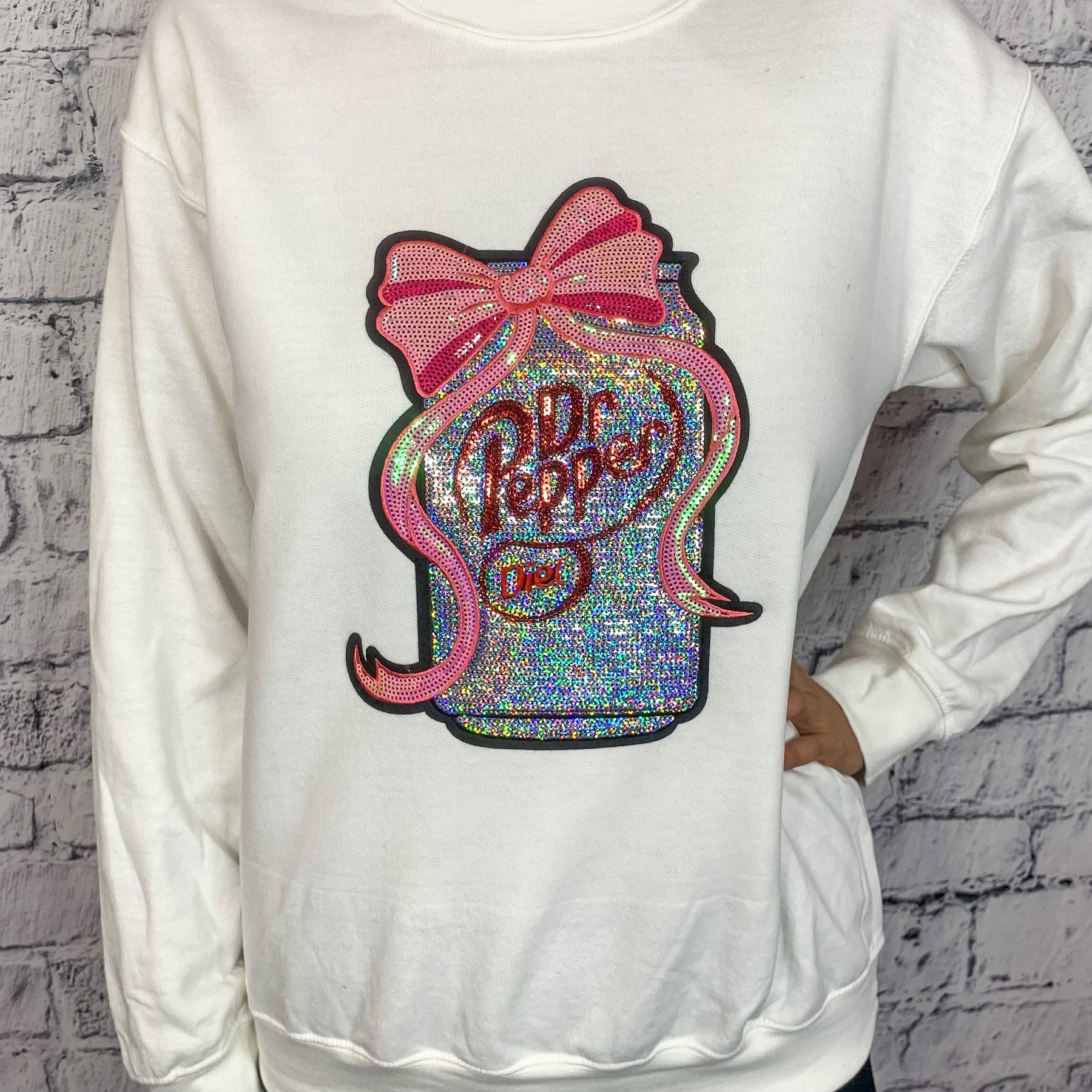 Diet Dr. Pepper Sequin Graphic Pullover - White