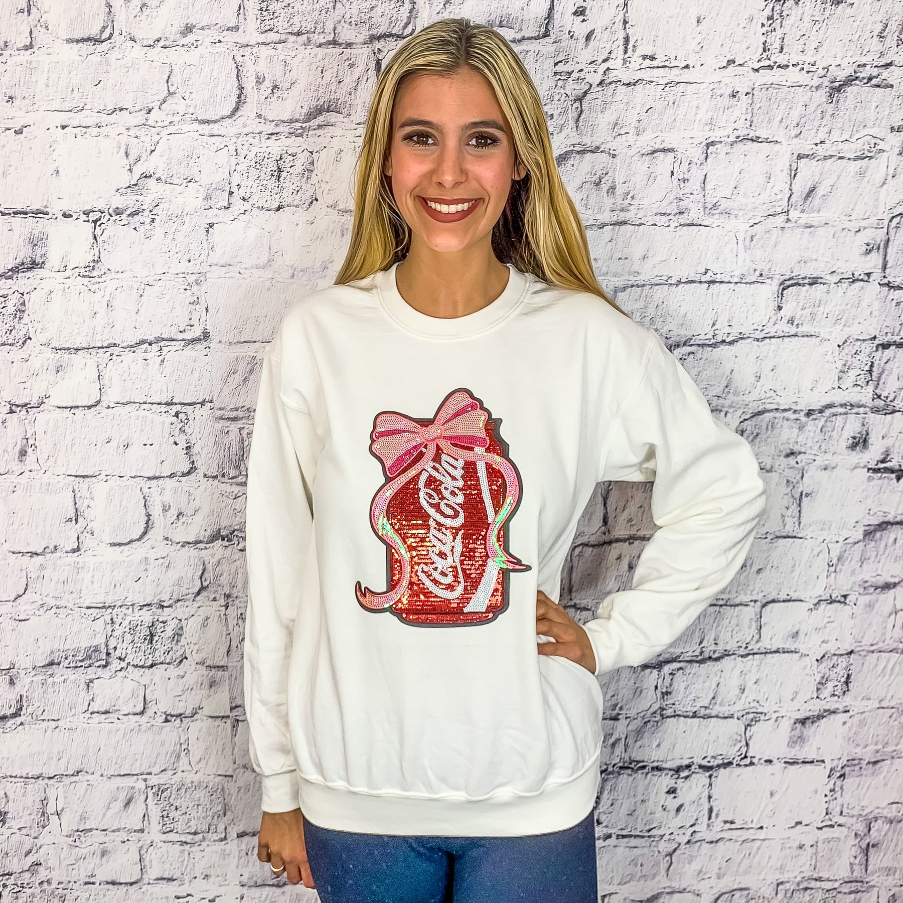 Coca-Cola Sequin Graphic Pullover - White