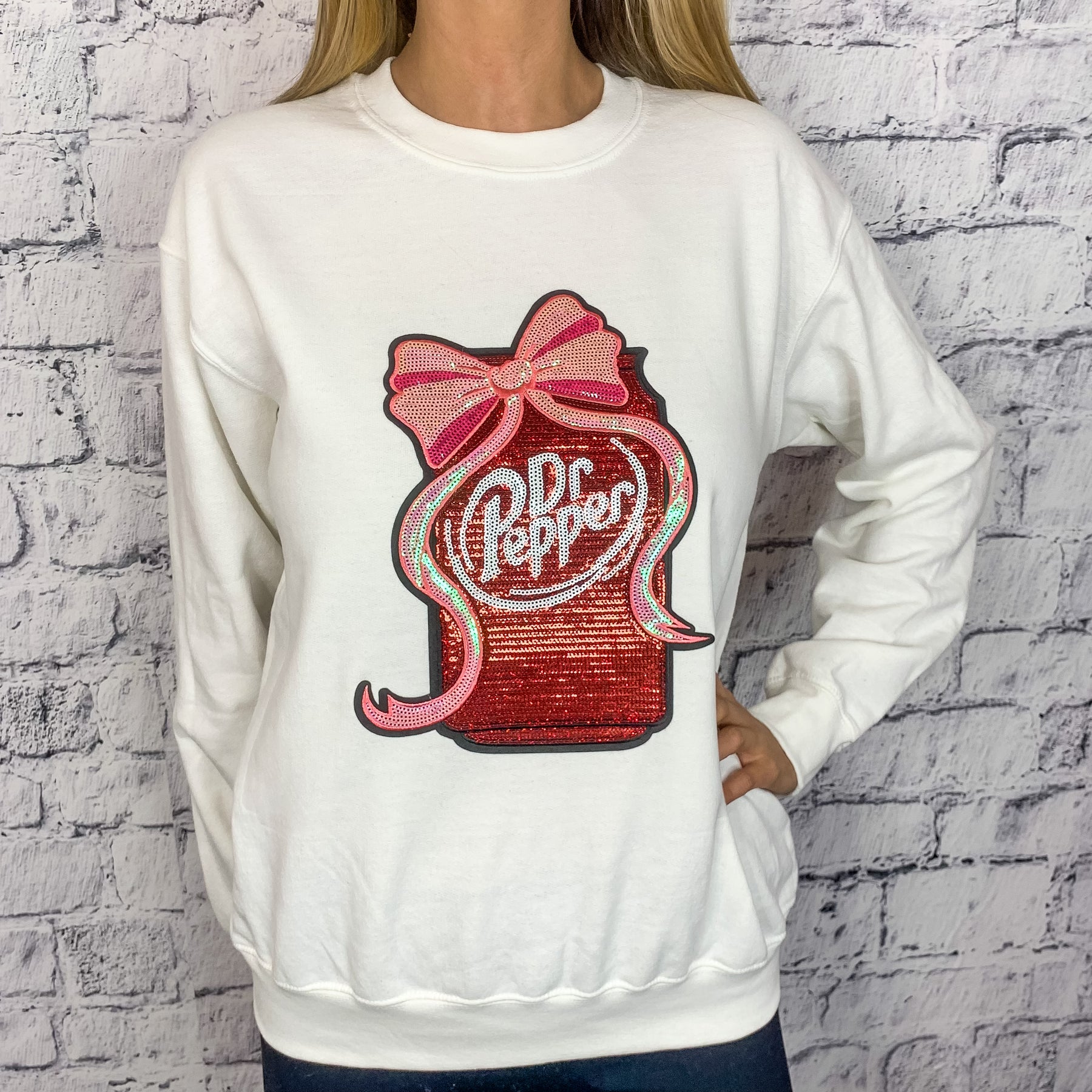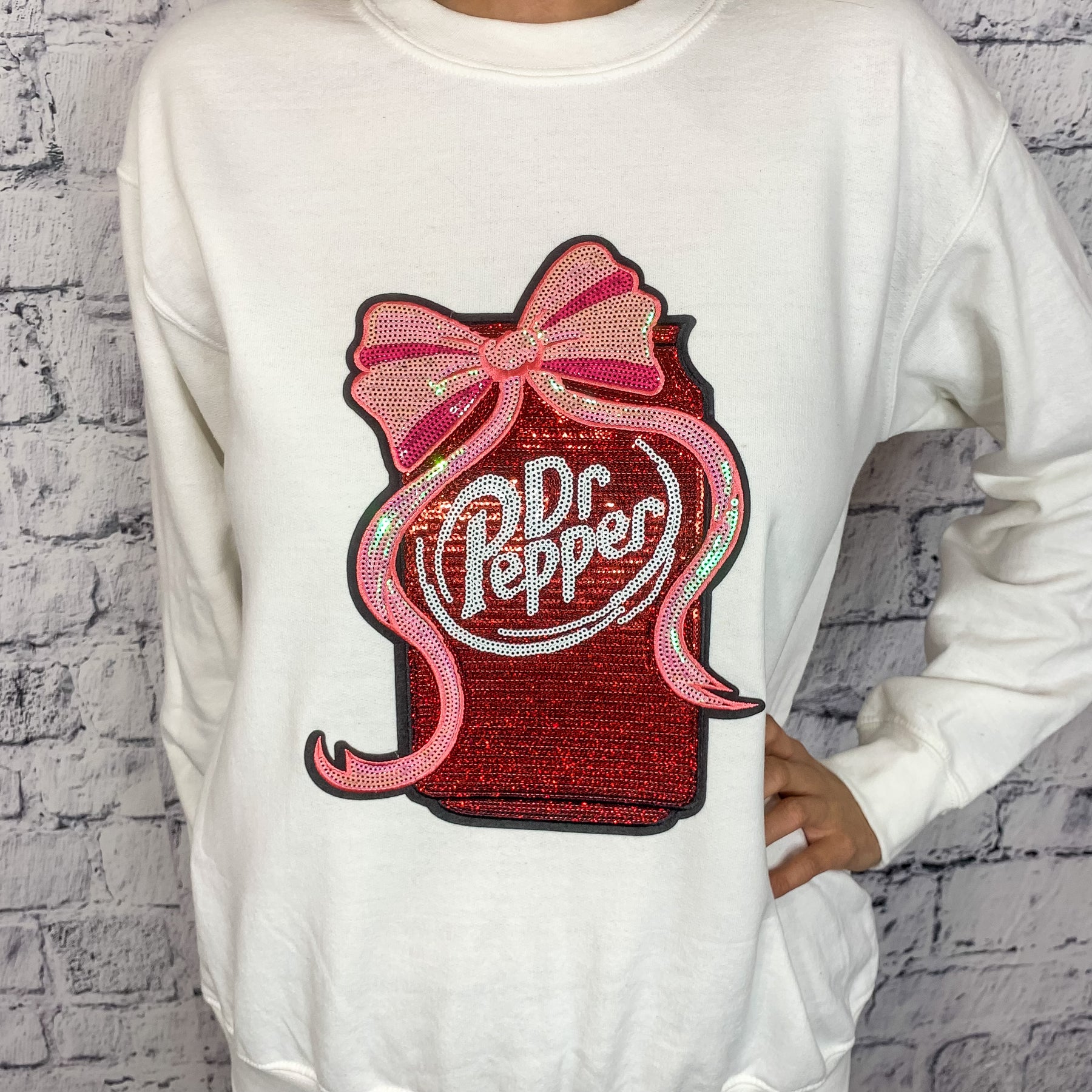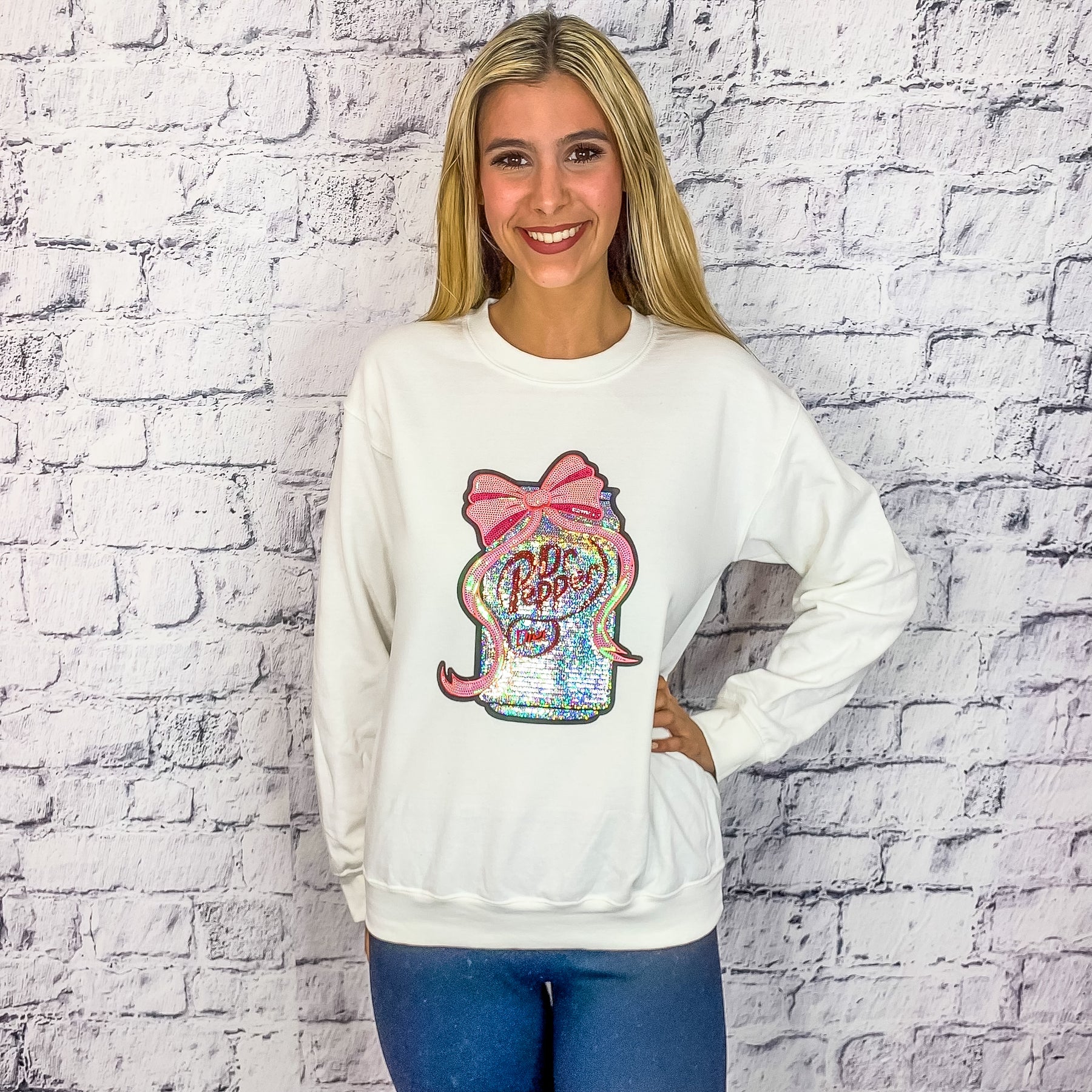 Dr. Pepper Sequin Graphic Pullover - White