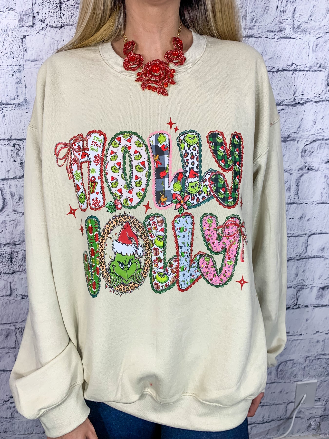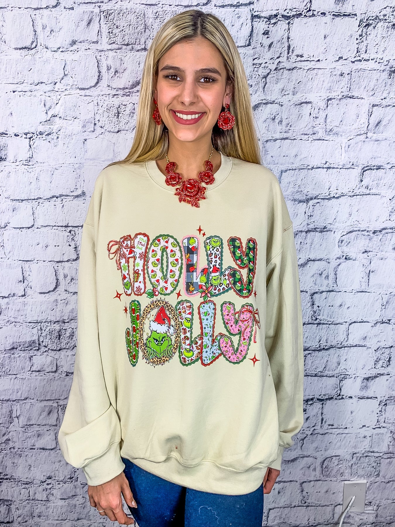 Holly Jolly AB Embellished Graphic Pullover - Sand