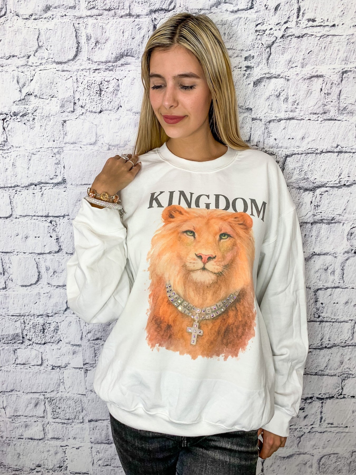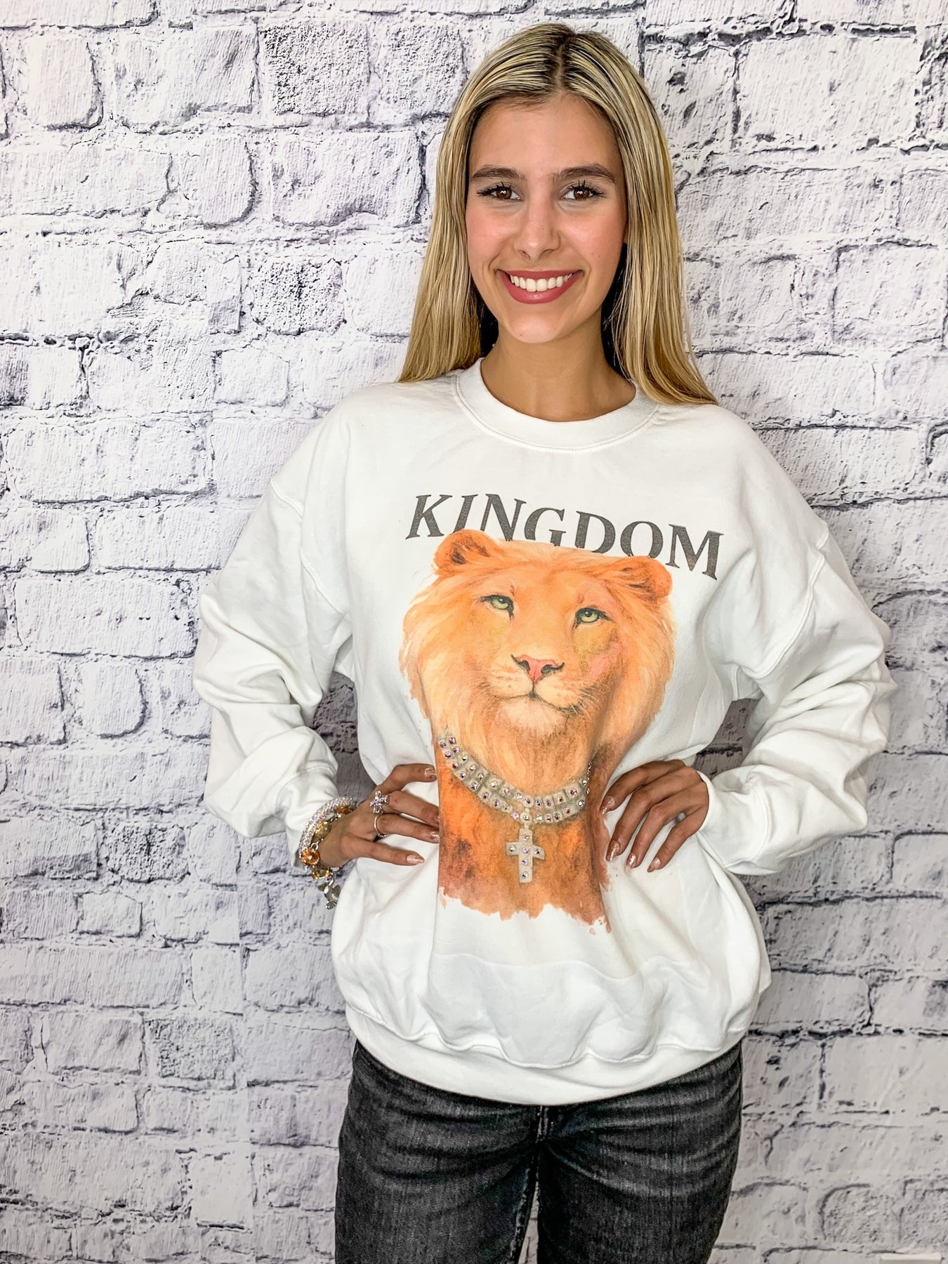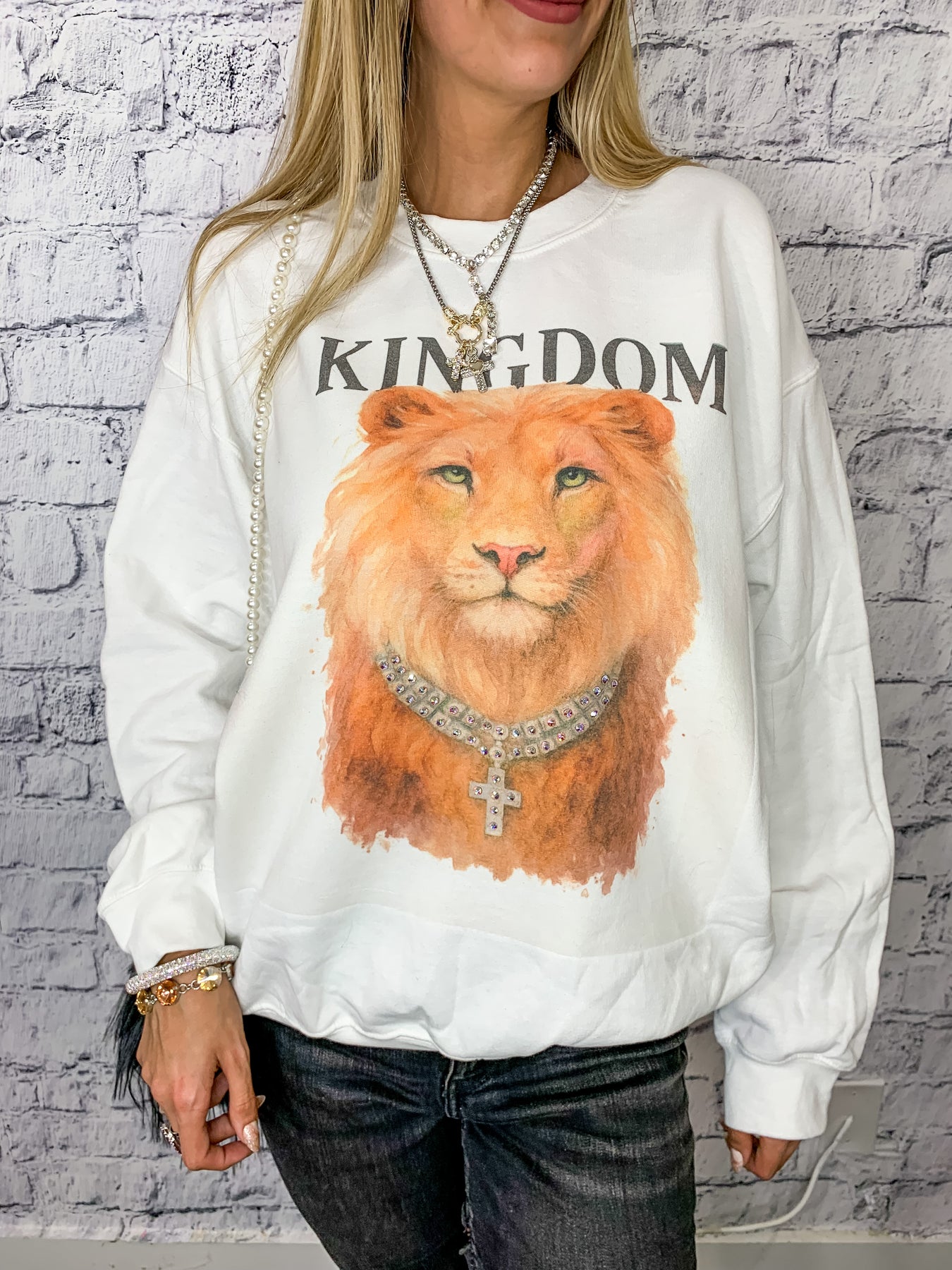 Kingdom AB Embellished Graphc Graphic Pullover - White
