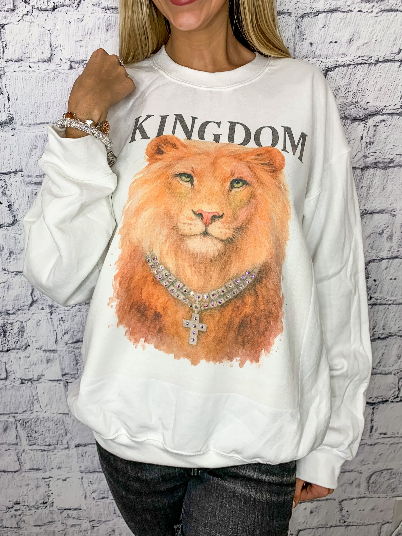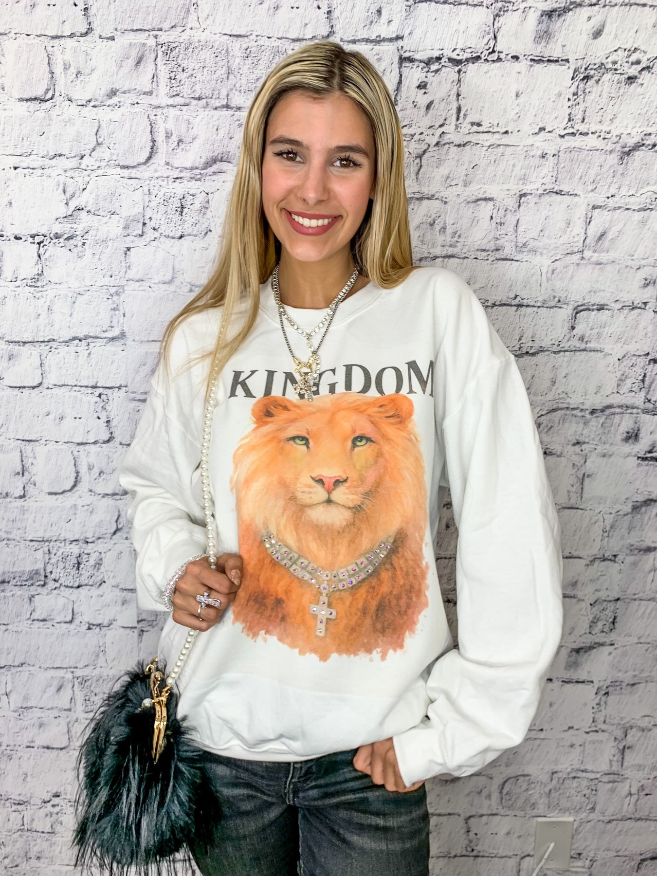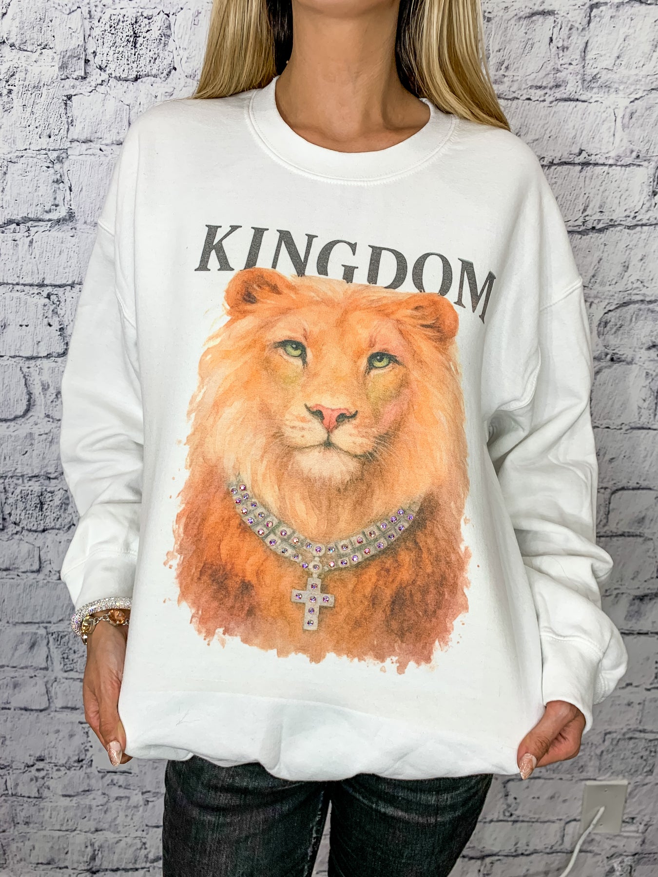 Kingdom AB Embellished Graphc Graphic Pullover - White