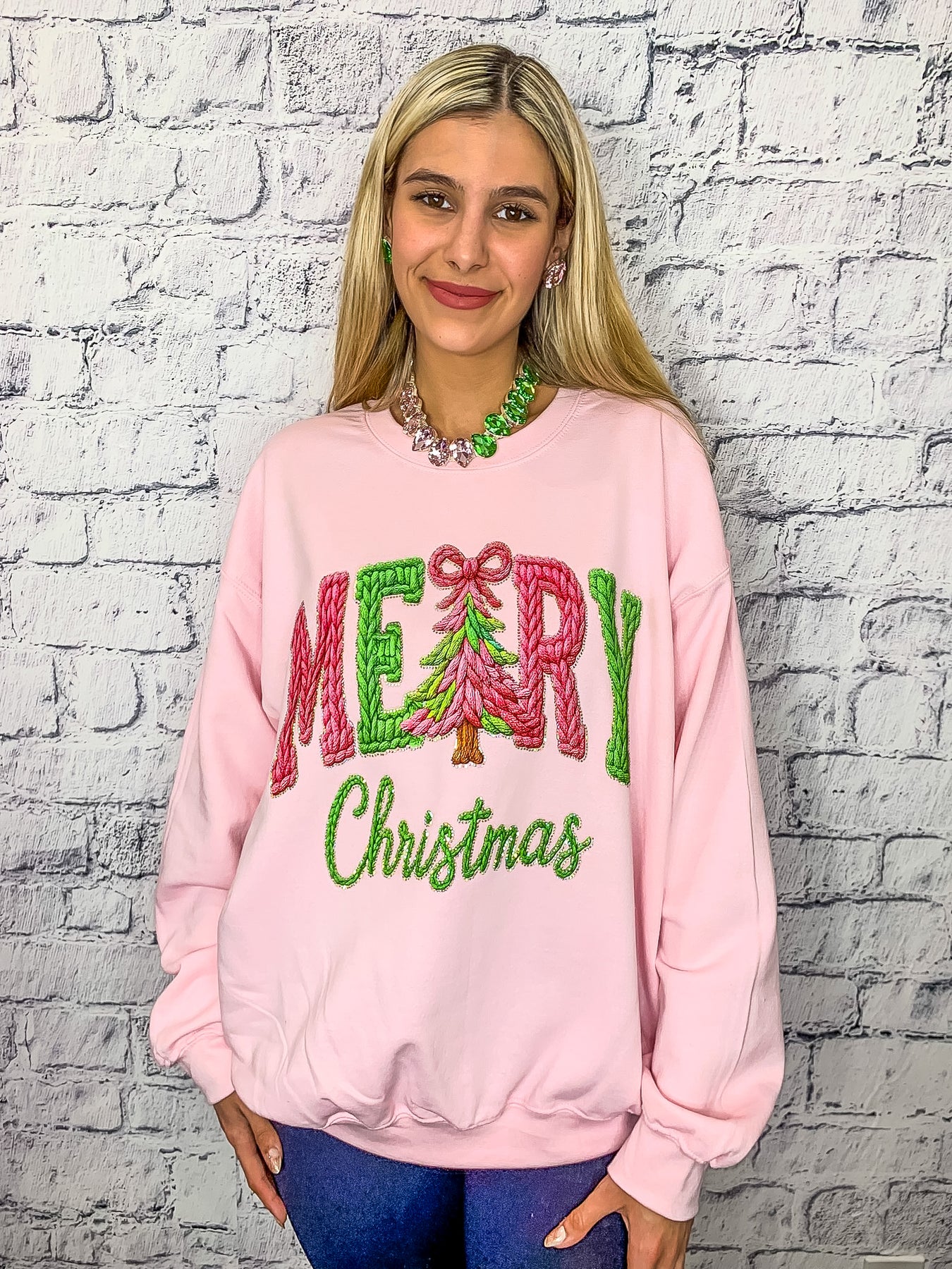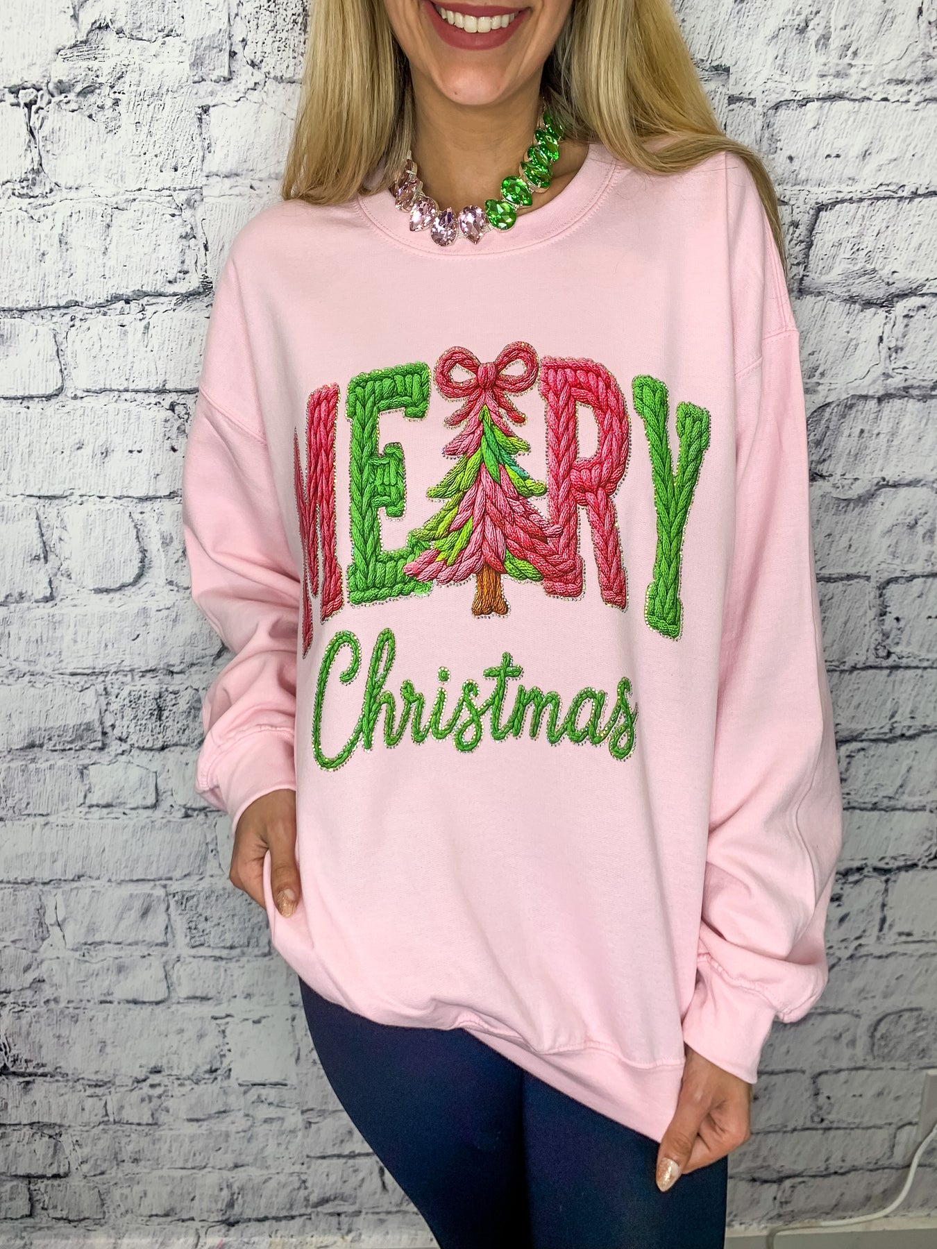 Merry Christmas AB Embellished Graphic Pullover - Pink