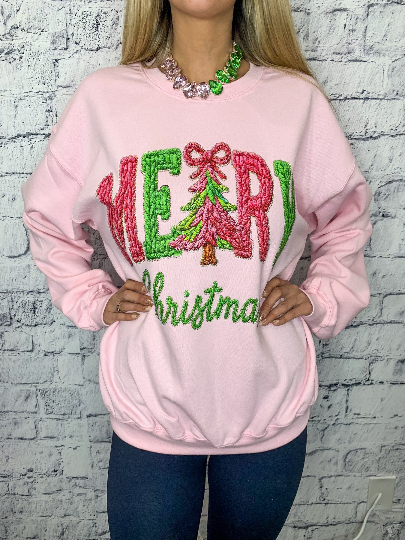Merry Christmas  AB Embellished Graphic Pullover - Pink