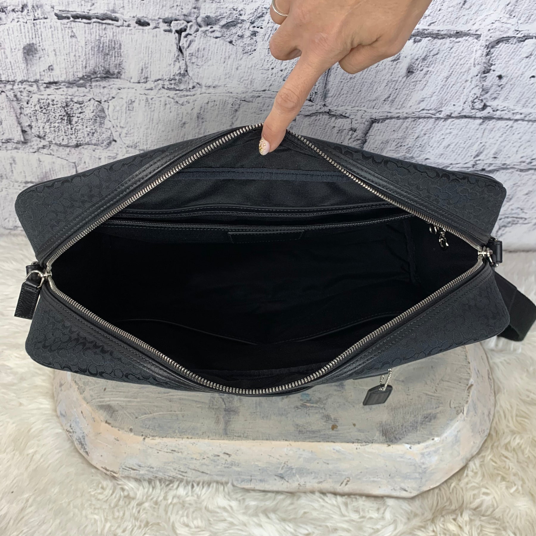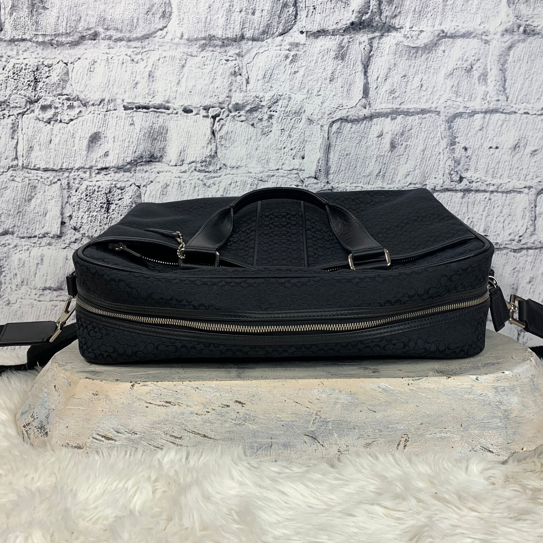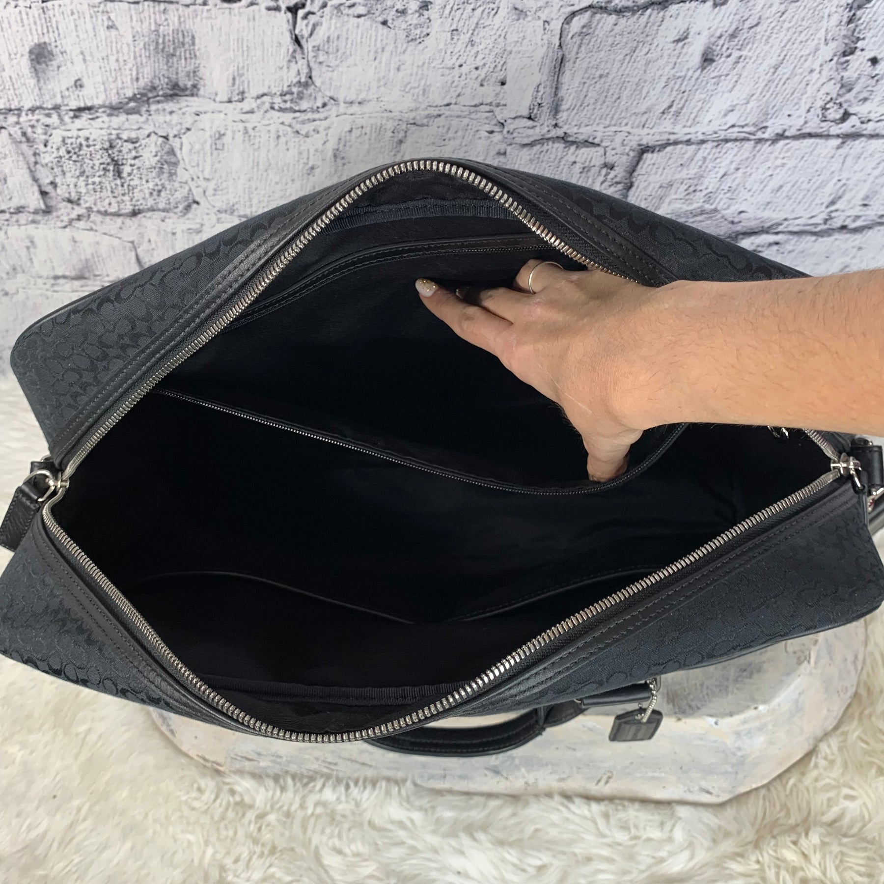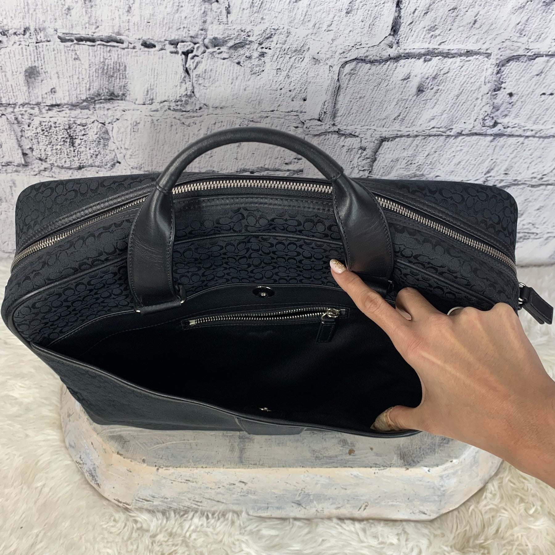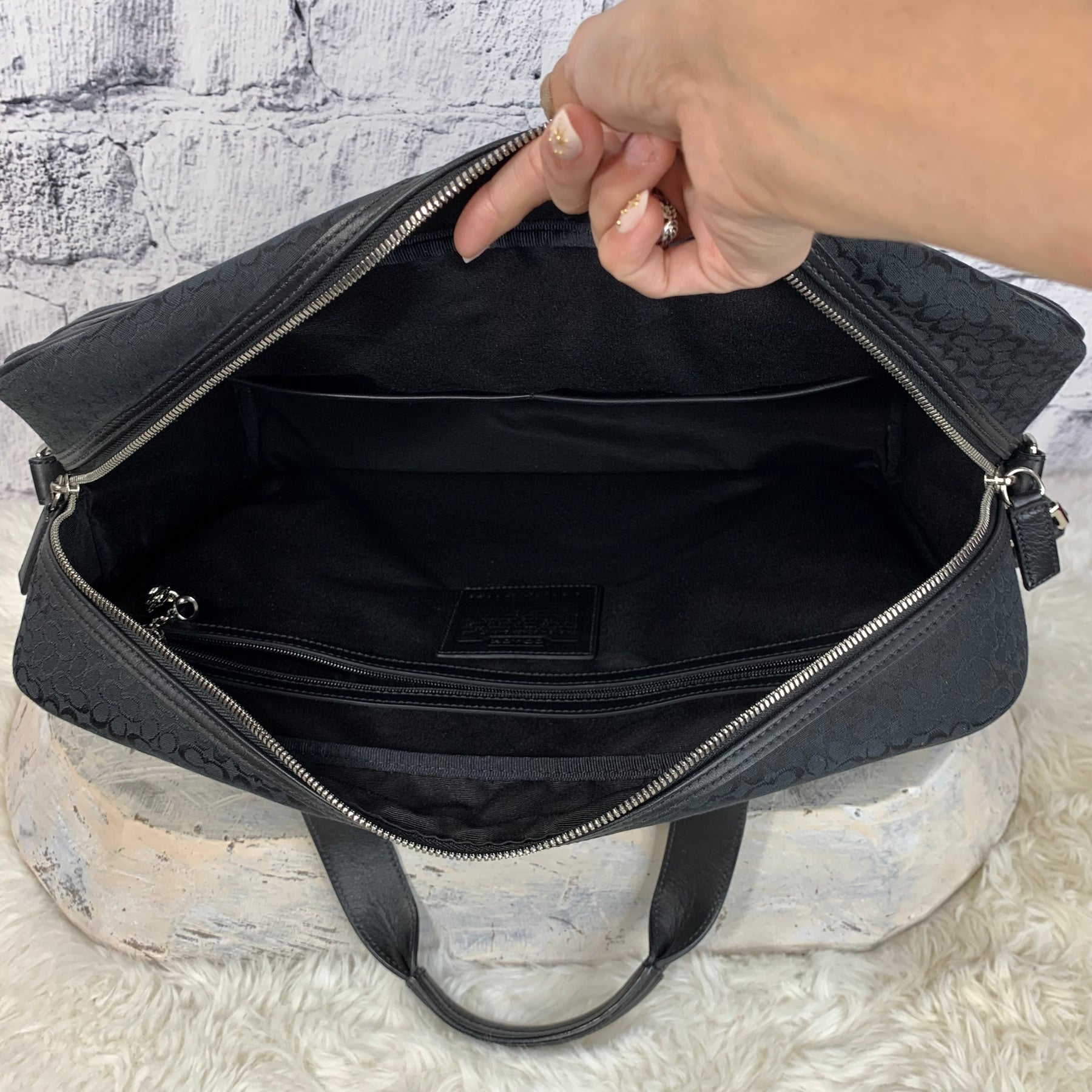 Pre Owned Coach Hudson Signature Briefcase Shoulder Computer Bag Black F70058