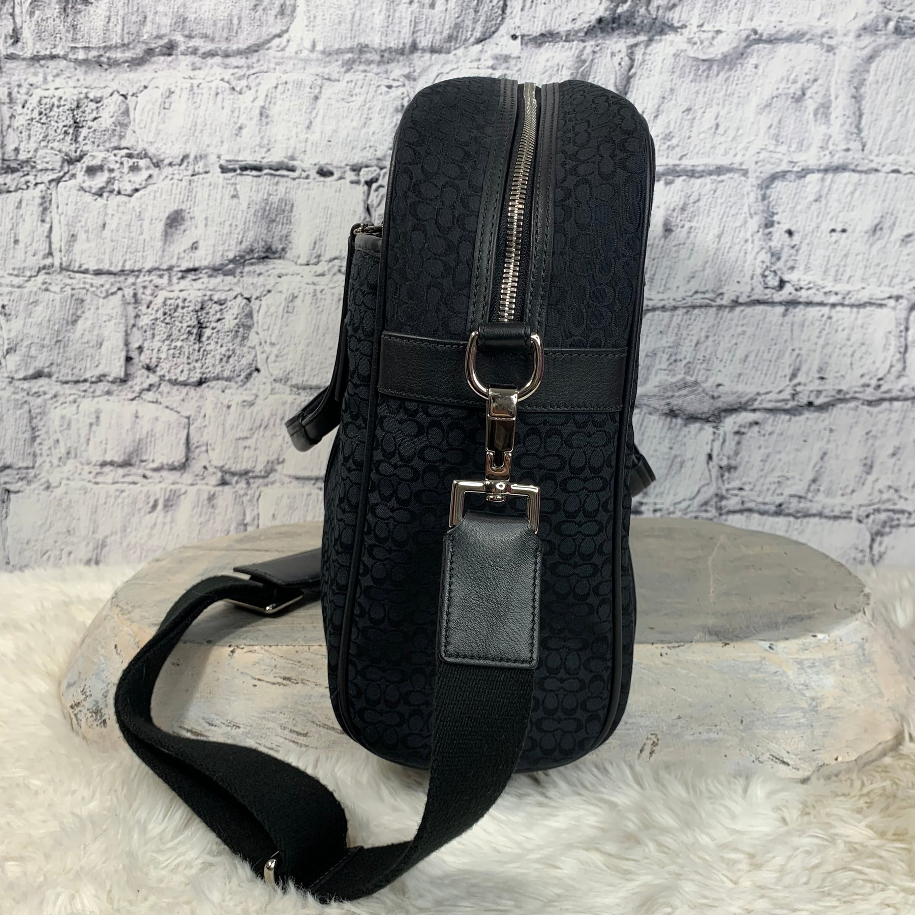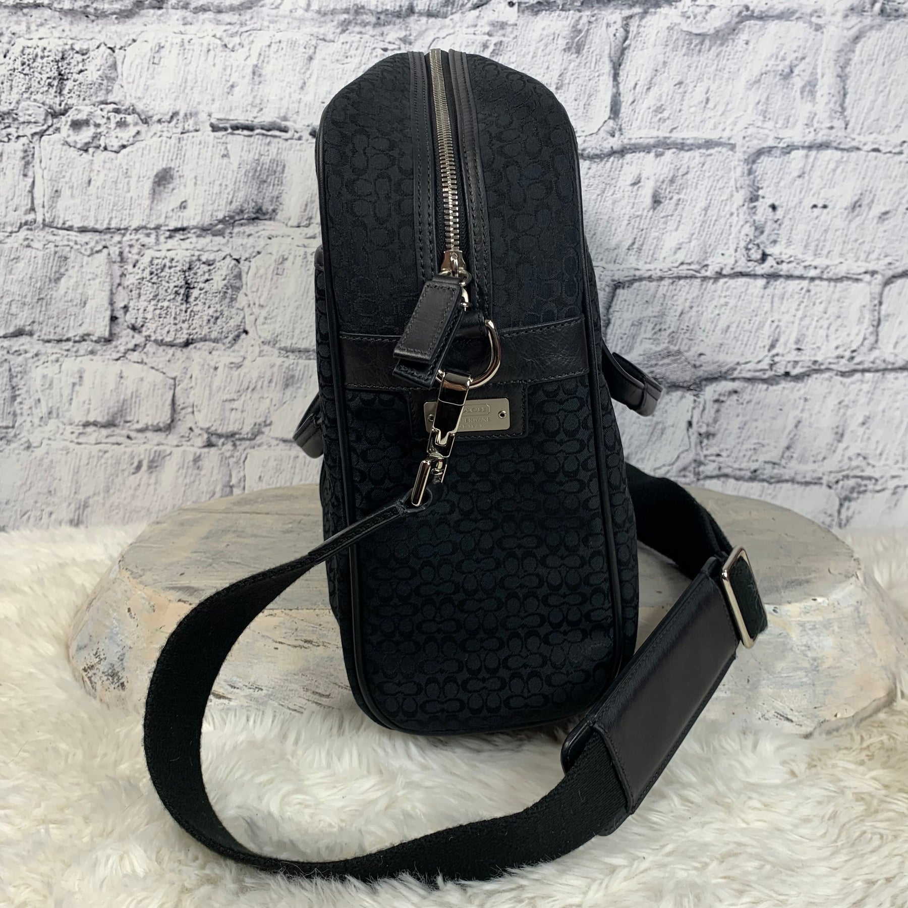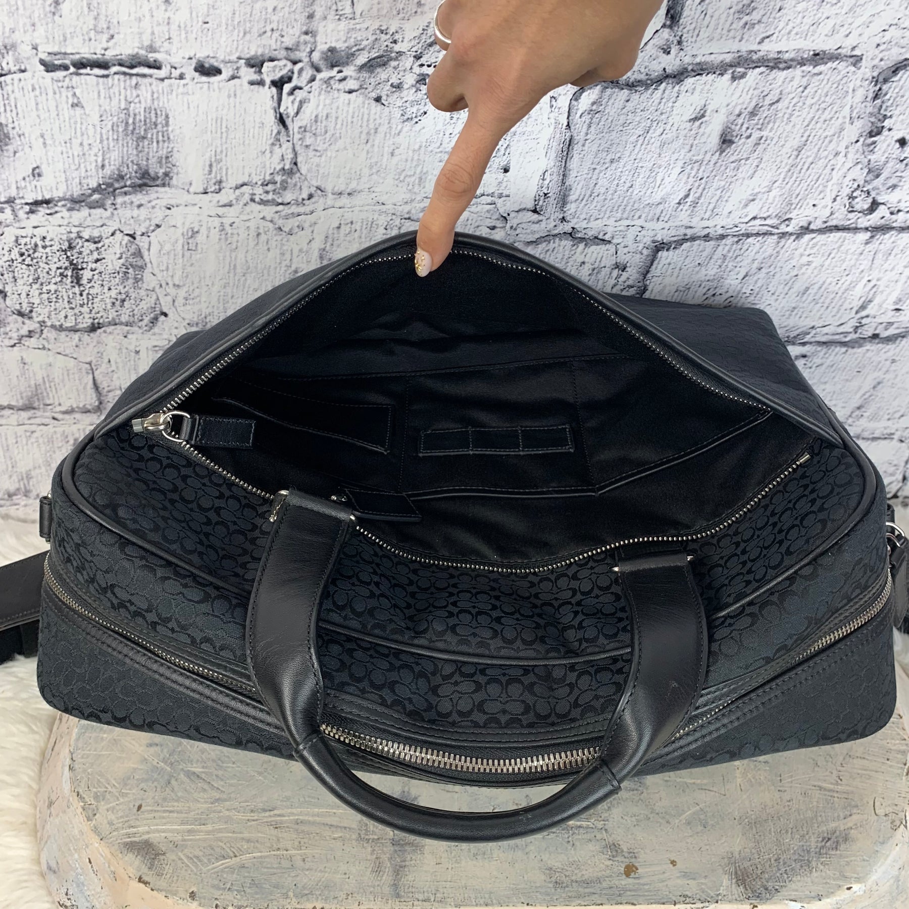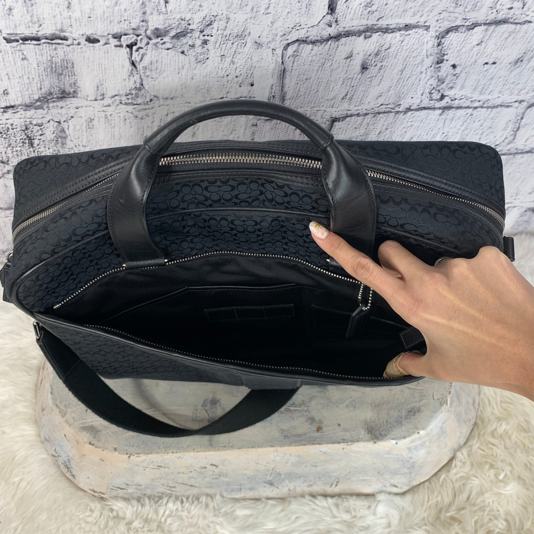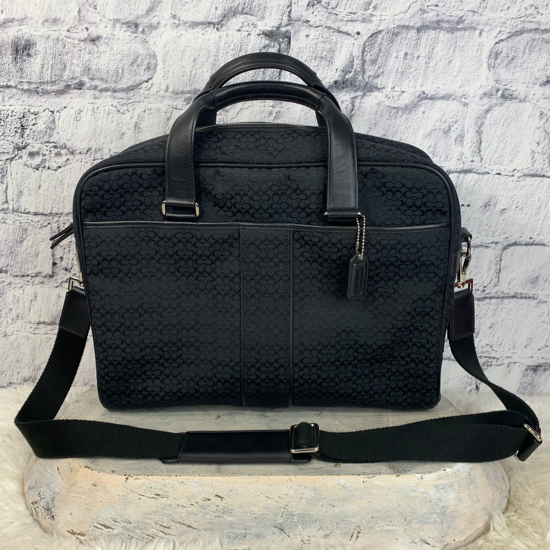 Pre Owned Coach Hudson Signature Briefcase Shoulder Computer Bag Black F70058
