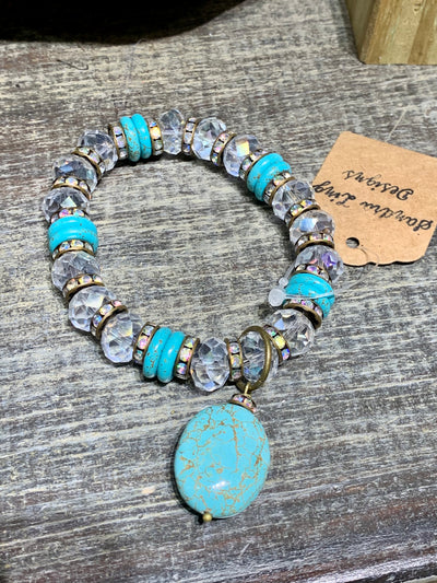 Genuine Turquoise AB Crystal Bead Oval Turquoise Dangle Stretch Bracelet
