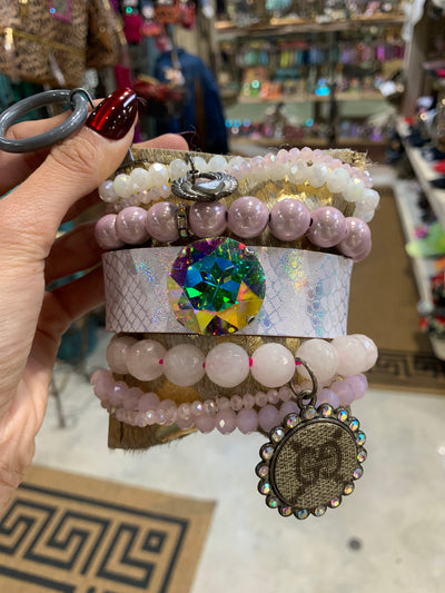 Spotted Stone G Upcycled Bead Bracelet - Black/White