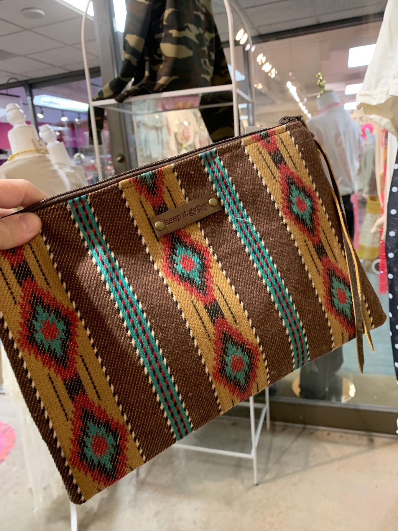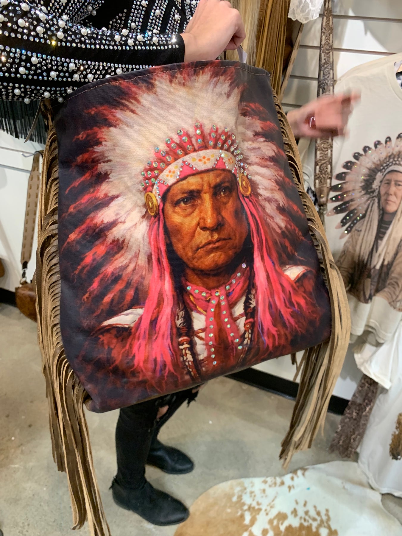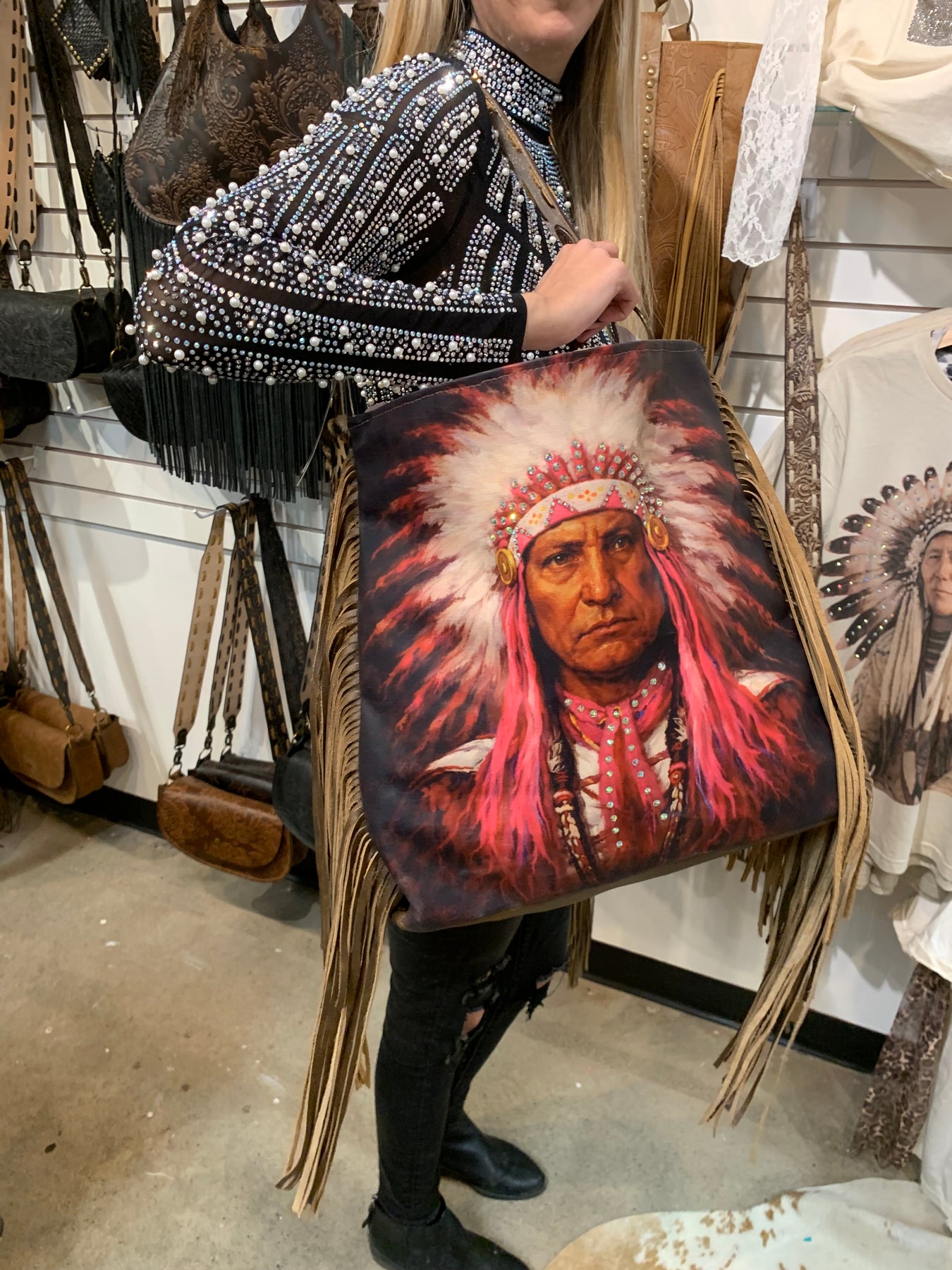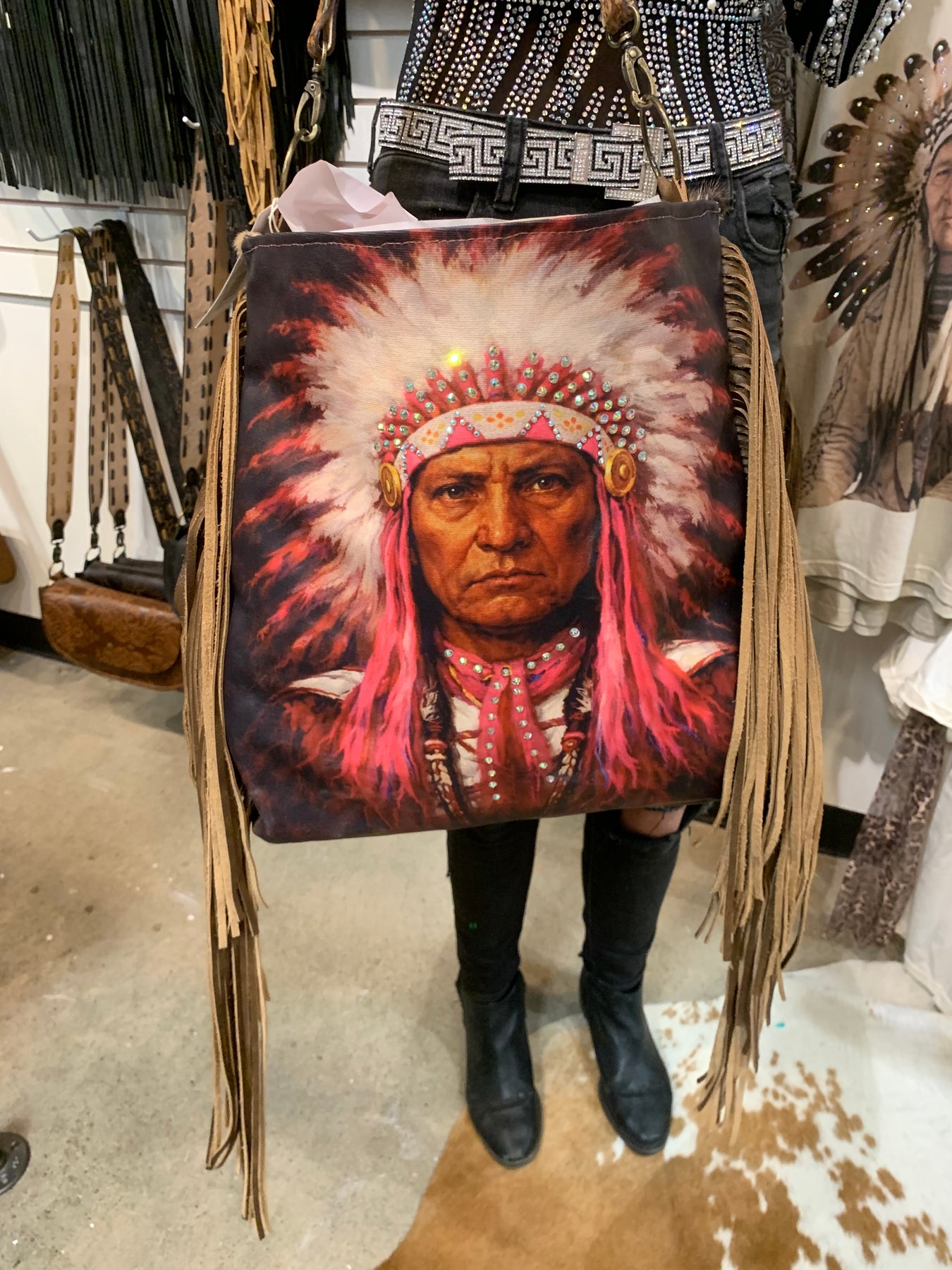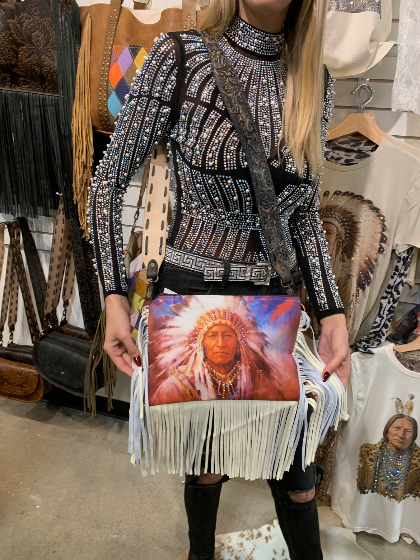 Chief AB Fringe Crossbody Dark Brown/Pink Feather