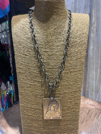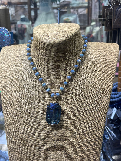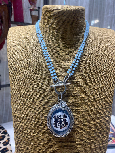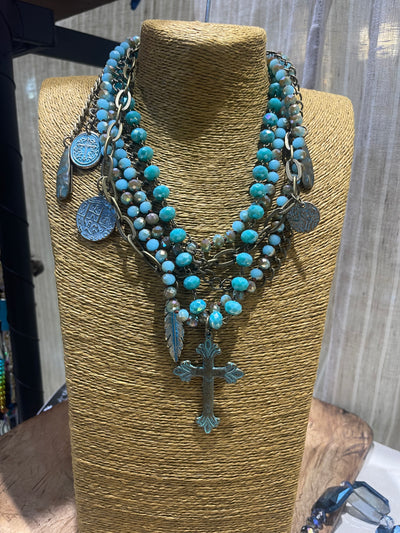 Multi Layer Cross Charm Necklace - Turquoise Mix
