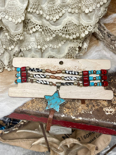 Denim canvas leather AB crystal oval concho cuff - Denim Collection