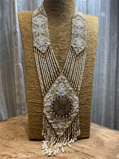 Tahiti nights beaded upcycled g Necklace- sand/white/beige