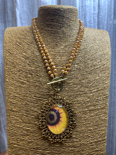 Sunflower bubble pendant toggle Necklace - Yellow Mix