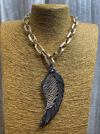 Pave Angel wing Necklace - mixed metals