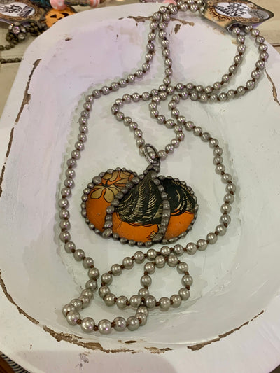 Crystal spider gunmetal Necklace -gunmetal/mermaid