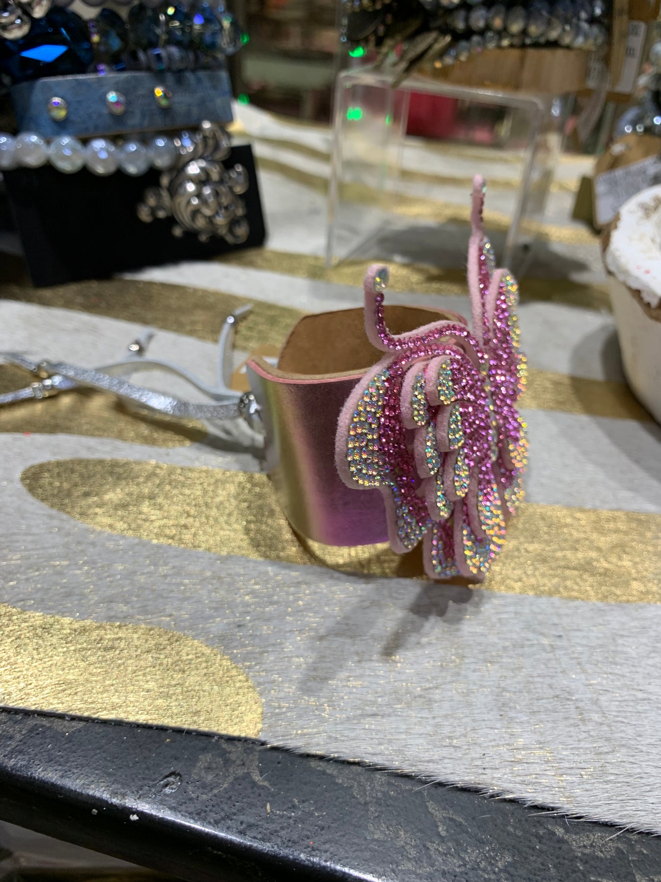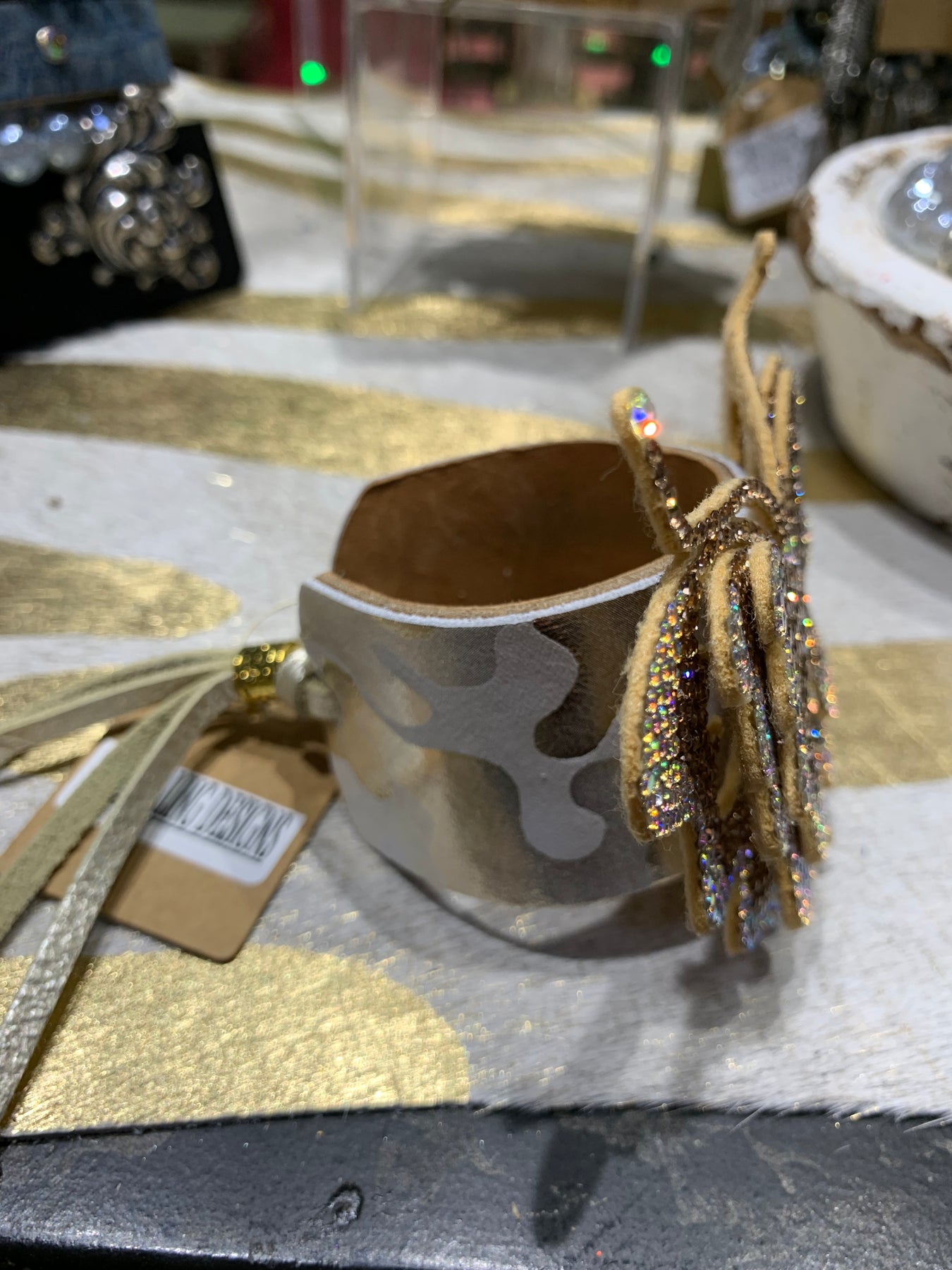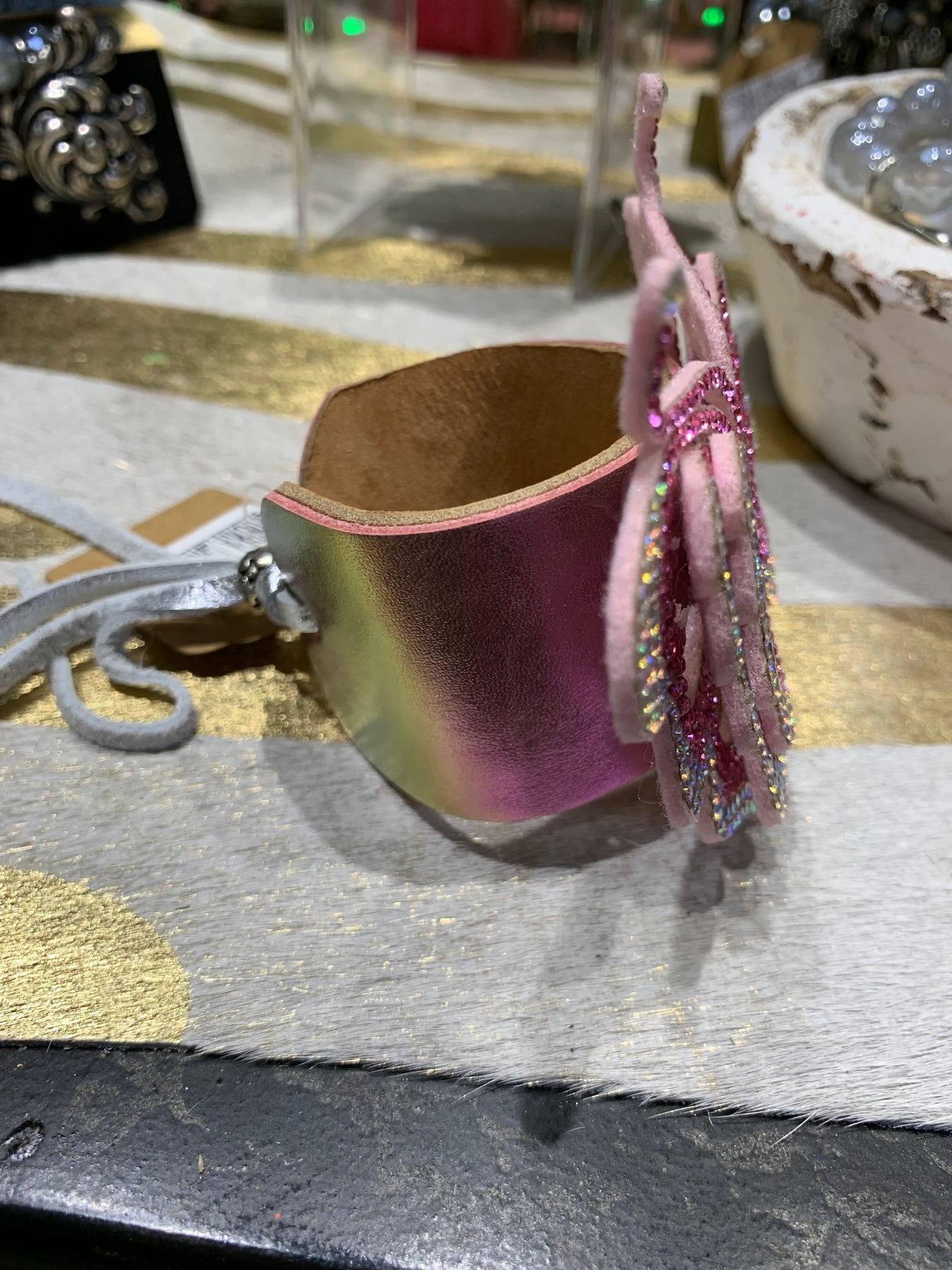 Clear Crystal Upcycled Cowhide Cuff - Black
