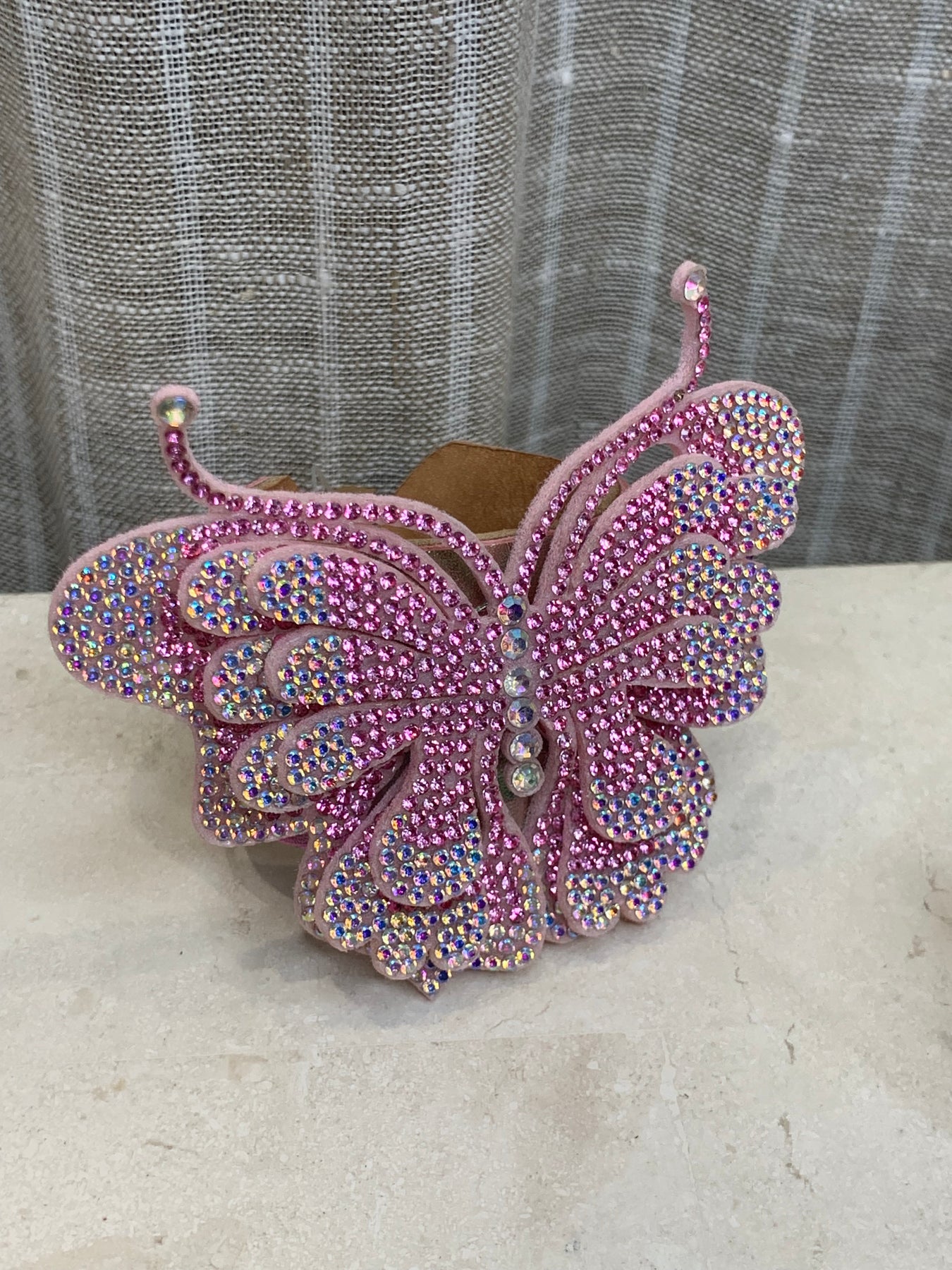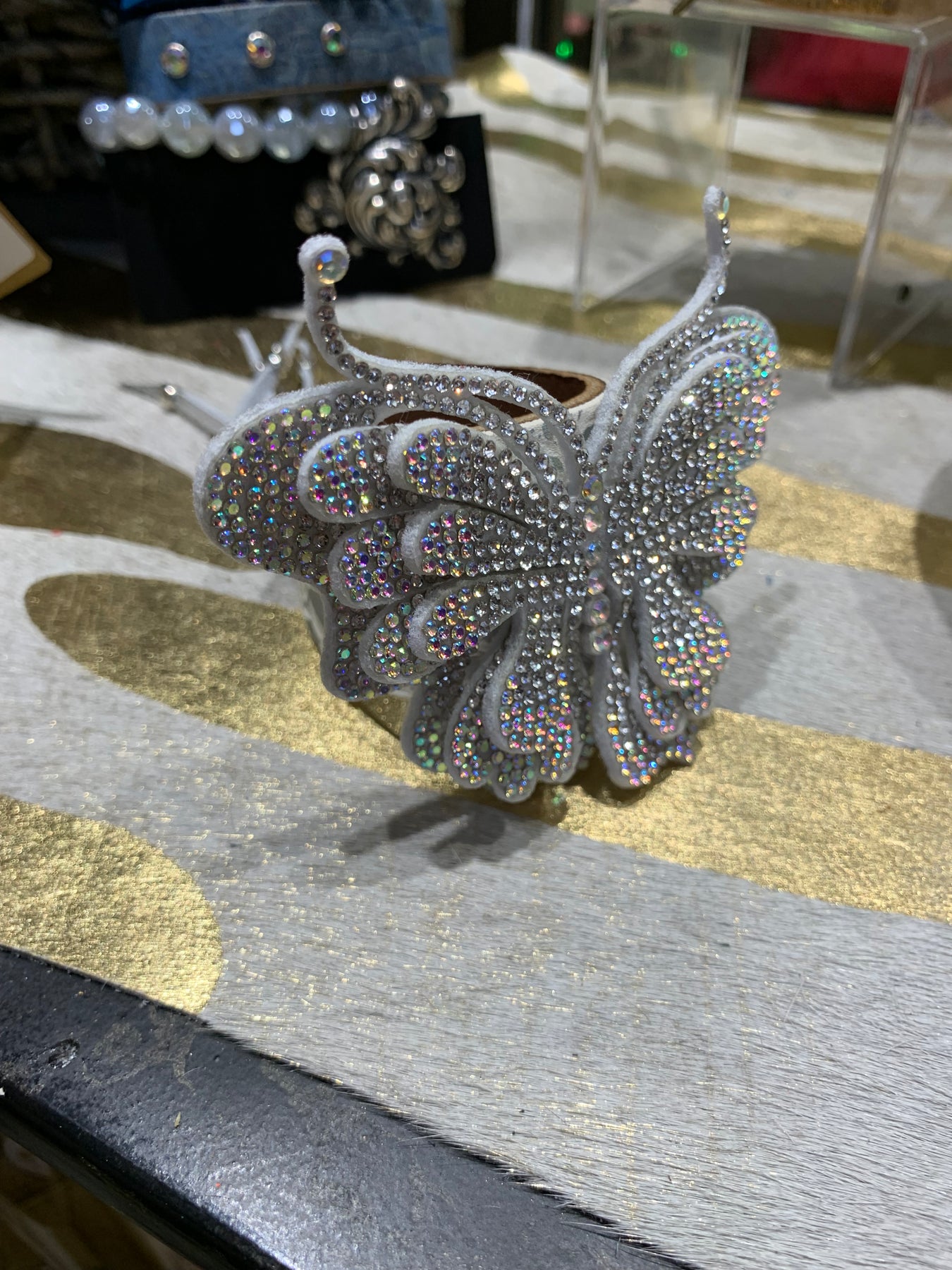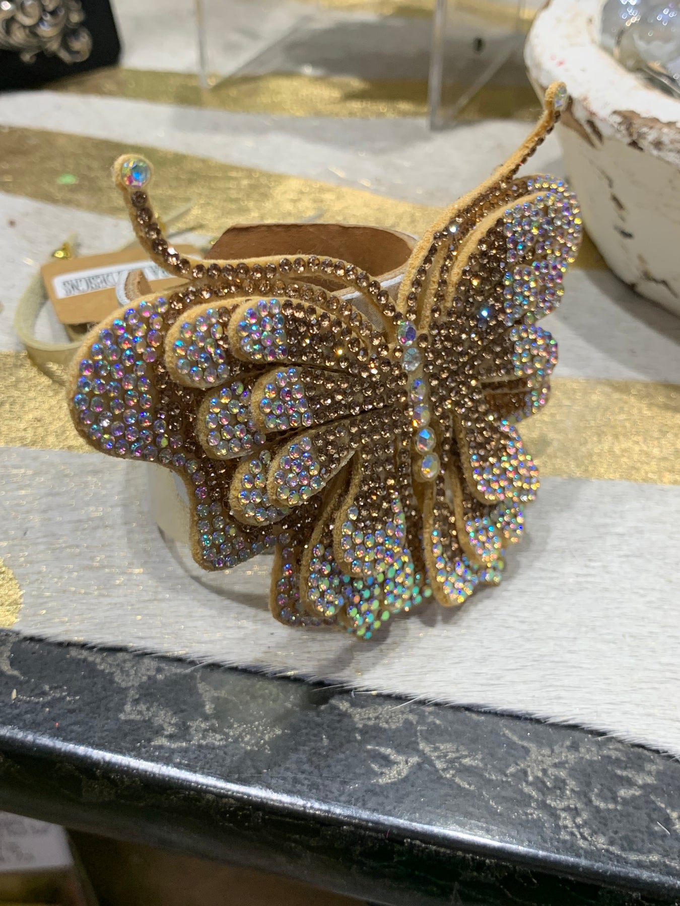 Clear Crystal Upcycled Cowhide Cuff - Black