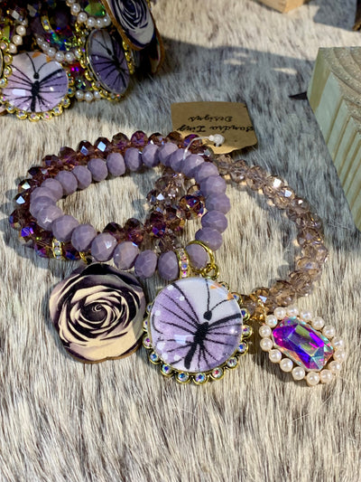 Rose and Butterfly AB Bracelet Set - Purple Mix