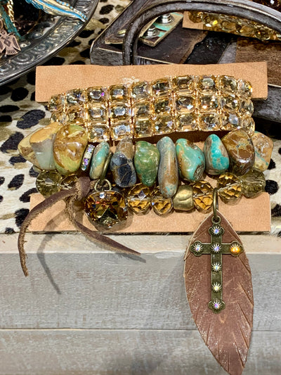 Tulsa Genuine Turquoise Cross Charm Bracelet Set - Amber Mix