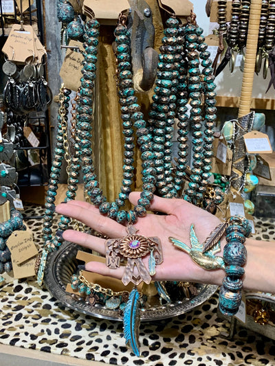 Desert Cruise Cowhide Red Pendant Cuff - Blonde Mix