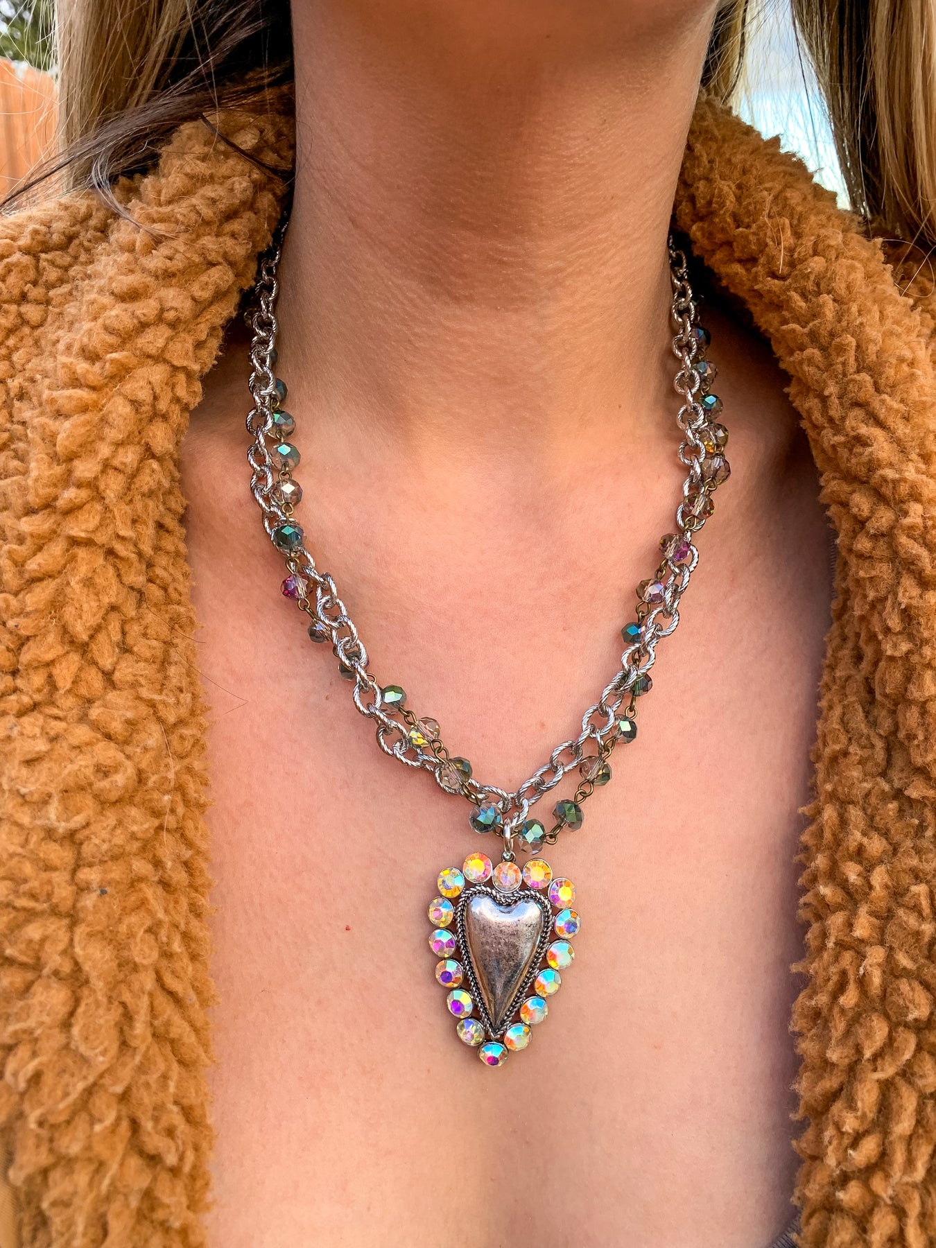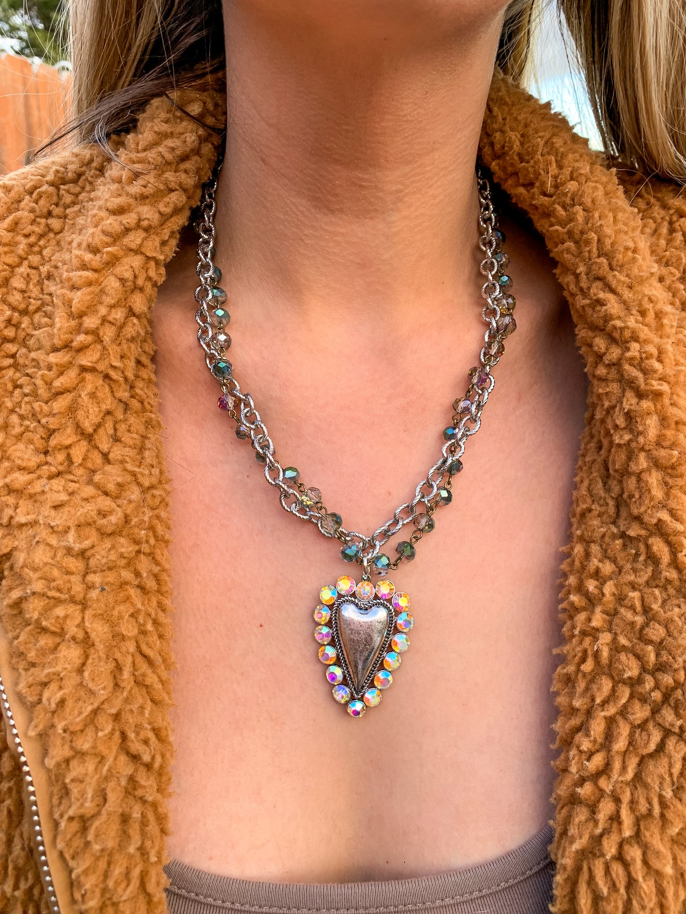 Heart of Hearts AB Chunky Heart Layered Upcycled Necklace
