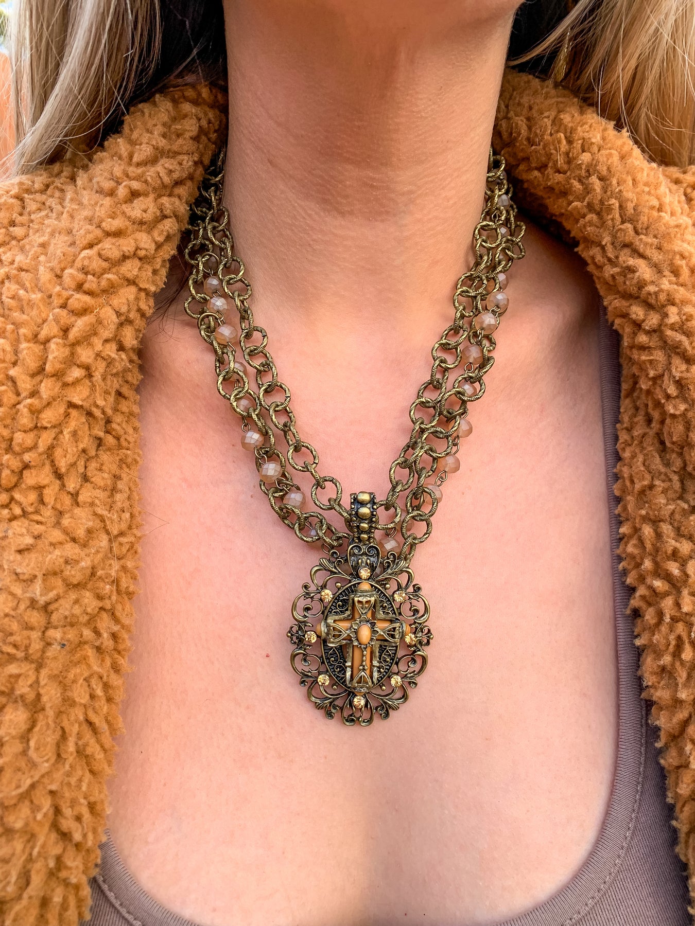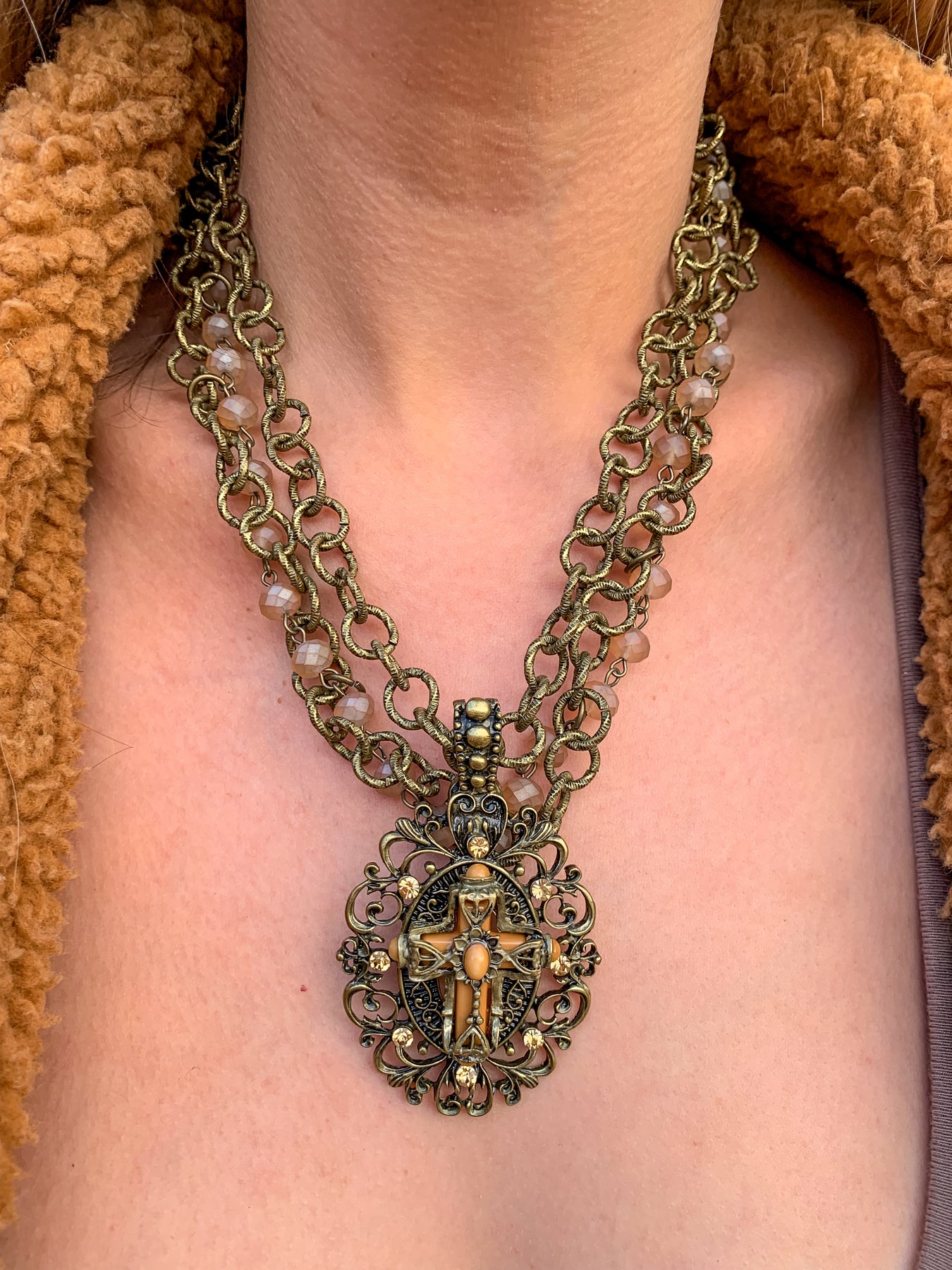 Ever Faith Cross Pendant Layered Upcycled Necklace