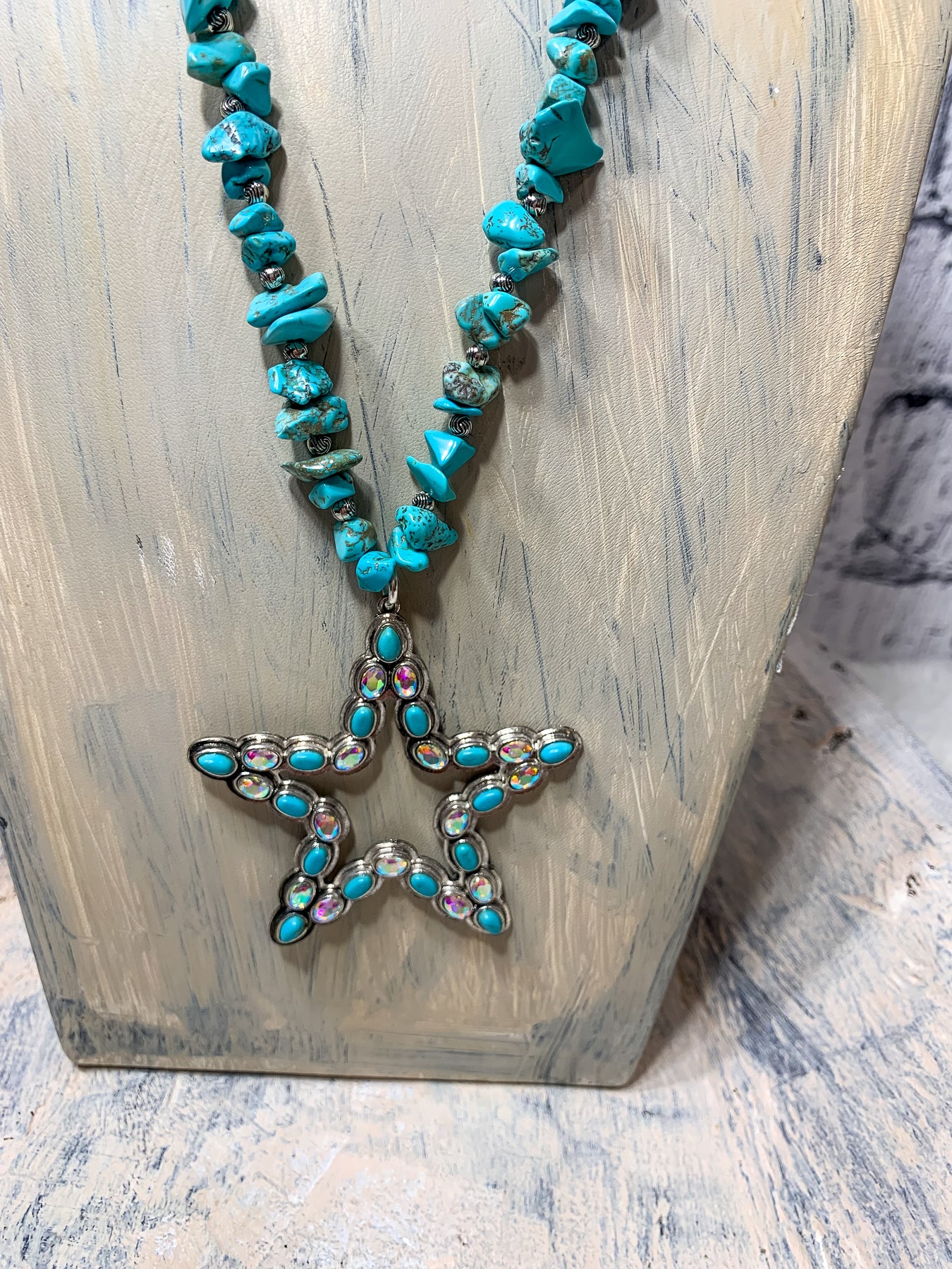 Follow Your Star AB Chunky Stone Necklace - Turquoise Mix
